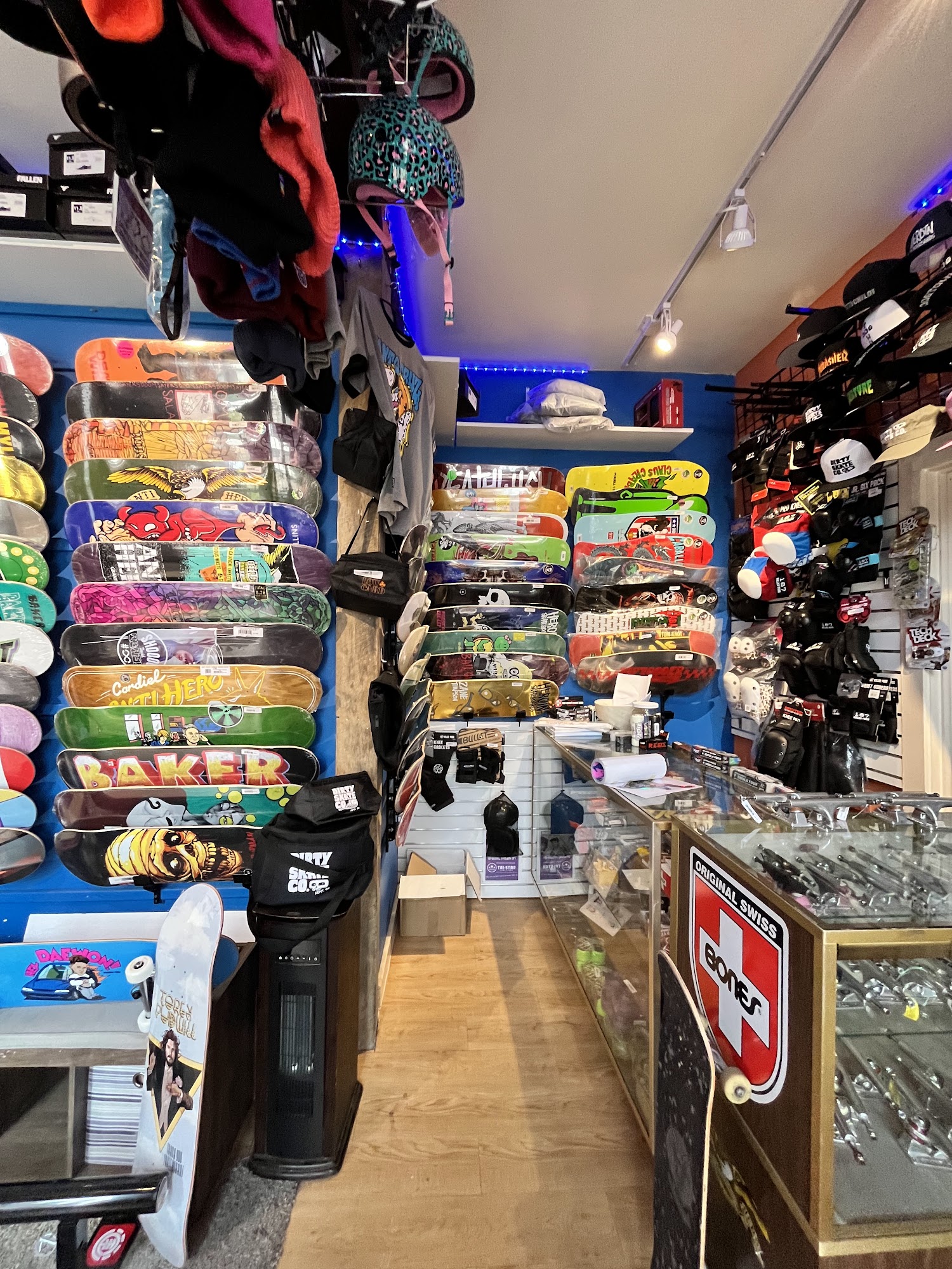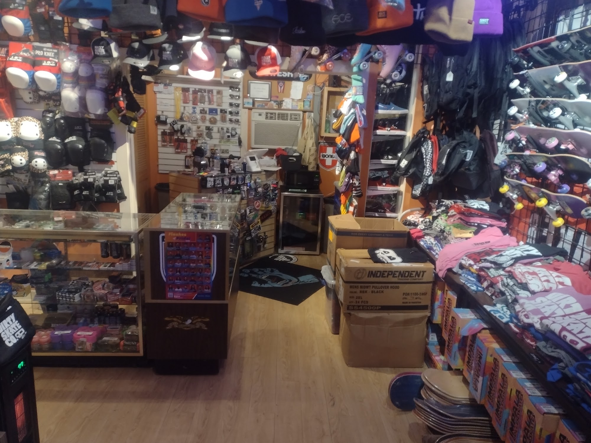 They have everything you need, fair prices, friendly service, some awesome unique custom boards, shop apparel, and a full indoor skate park.