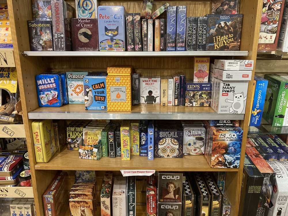 A quirky shop carrying games, novelties, gifts, gags, toys and all sorts of odd fun items. Off the Wagon carries a full selection of fantastic board and card games as well as favorites like Magic the Gathering, Dungeons and Dragons, Cards Against Humanity, Settlers of Catan, Ticket to Ride, Betrayal at House Hill and so much more. There is a nice selection of quality toys for kids and a fantastic selection of unusual and funny items that all ages will enjoy such as bigfoot and crazy cat lady action figures, nose flutes, chicken flingers, instant underpants, fake parking tickets, and fart whistles. Plus a nice selection of favorite POP Funko figures and so much more.