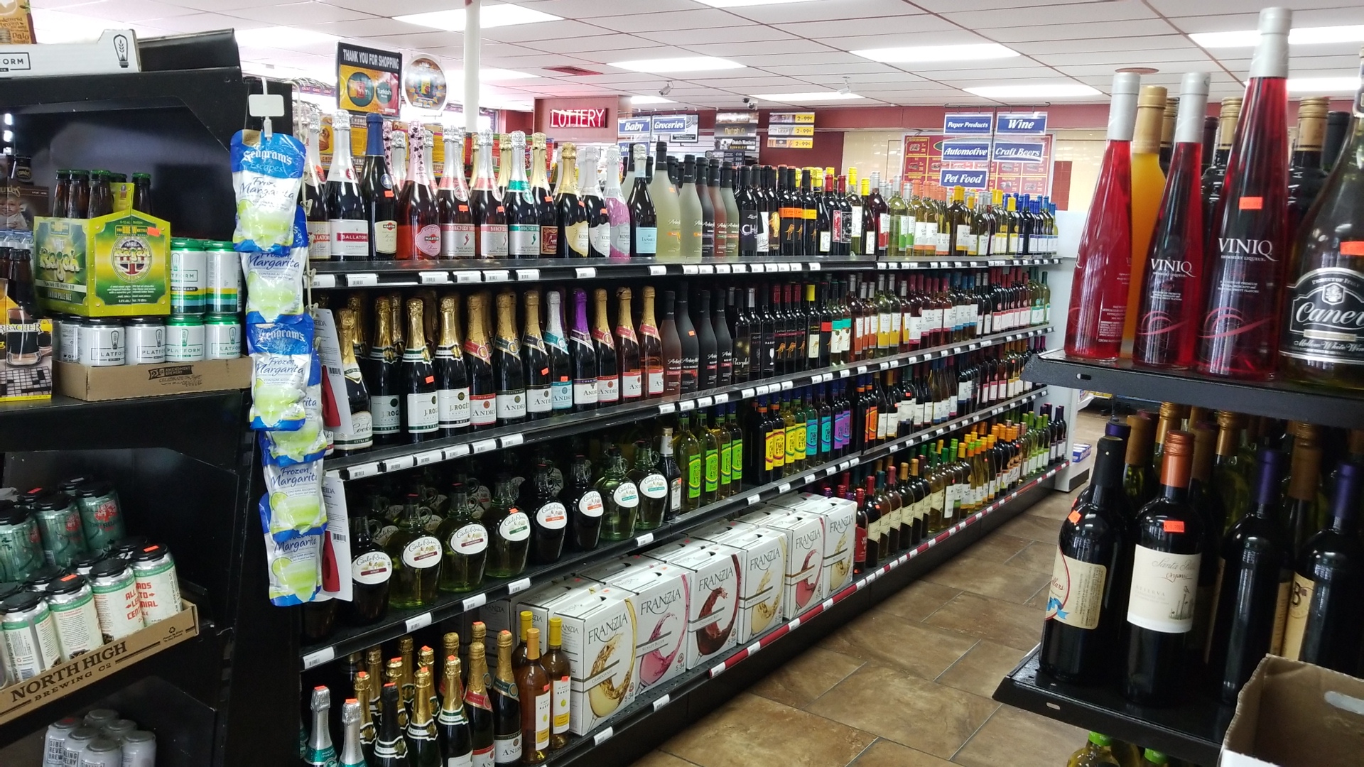 We've got decent selection of domestic and craft beers with micro brews and wine.. To go deli sandwiches and Lunch meat.