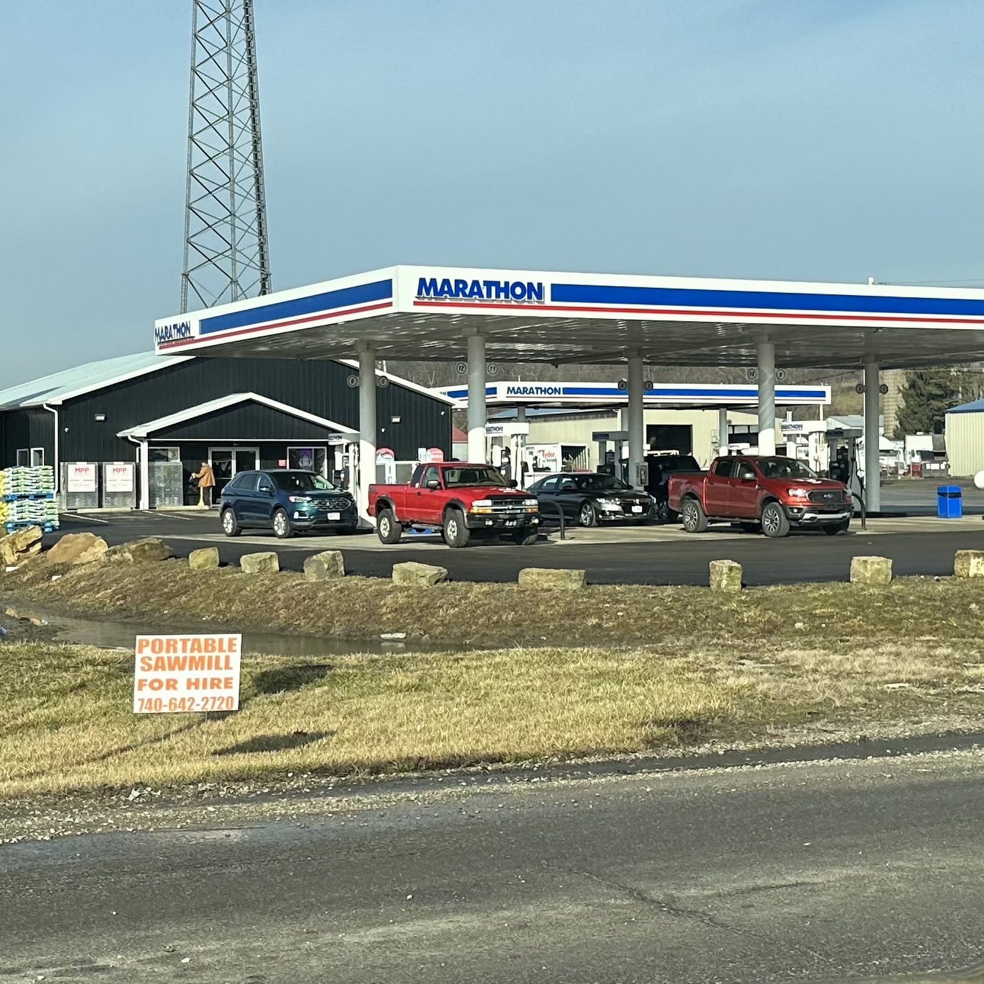 Buy Marathon, Buy American. Best prices on Gas and Diesel within 100 miles. Just trying to help the average Joe. You're one stop shop for food, snacks, lottery, cigarettes, beer, wine, ice cream, bread, and milk. Daily lunch Specials, pizza, subs, salads, soups, Amish fry pies, Amish desserts, and fresh coffee. Pull Tabs available in store. Softener salt and Firewood available. Storage Units available for rent on-site.