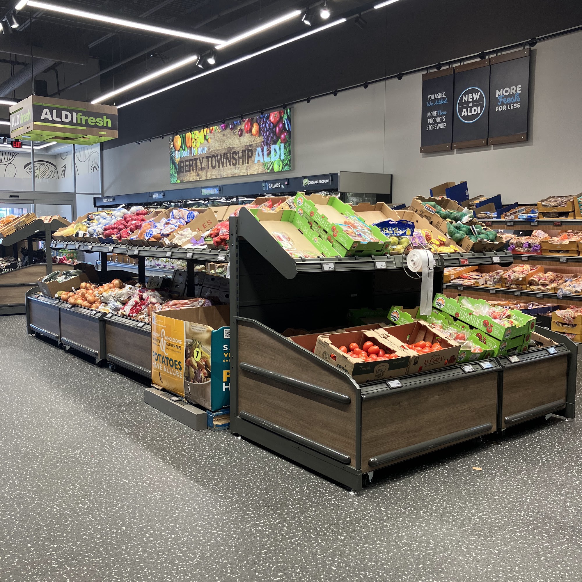 ALDI is a clean store with a great and good selection of foods at amazing, affordable, everyday low prices, cheaper than other grocery stores. It offers fresh produce, meat, seafood, baked goods, pre-made deli items, frozen treats, and excellent options for vegetarians, plus home goods. Some customers note it does not have "everything" and can lack specific items. A common critique is that there is often only one cashier working, leading to lines at the cash checkout, and the self-checkout does not take cash. The outside cart area is sometimes full of trash. Customers appreciate the option for online orders with curbside pickup or delivery.