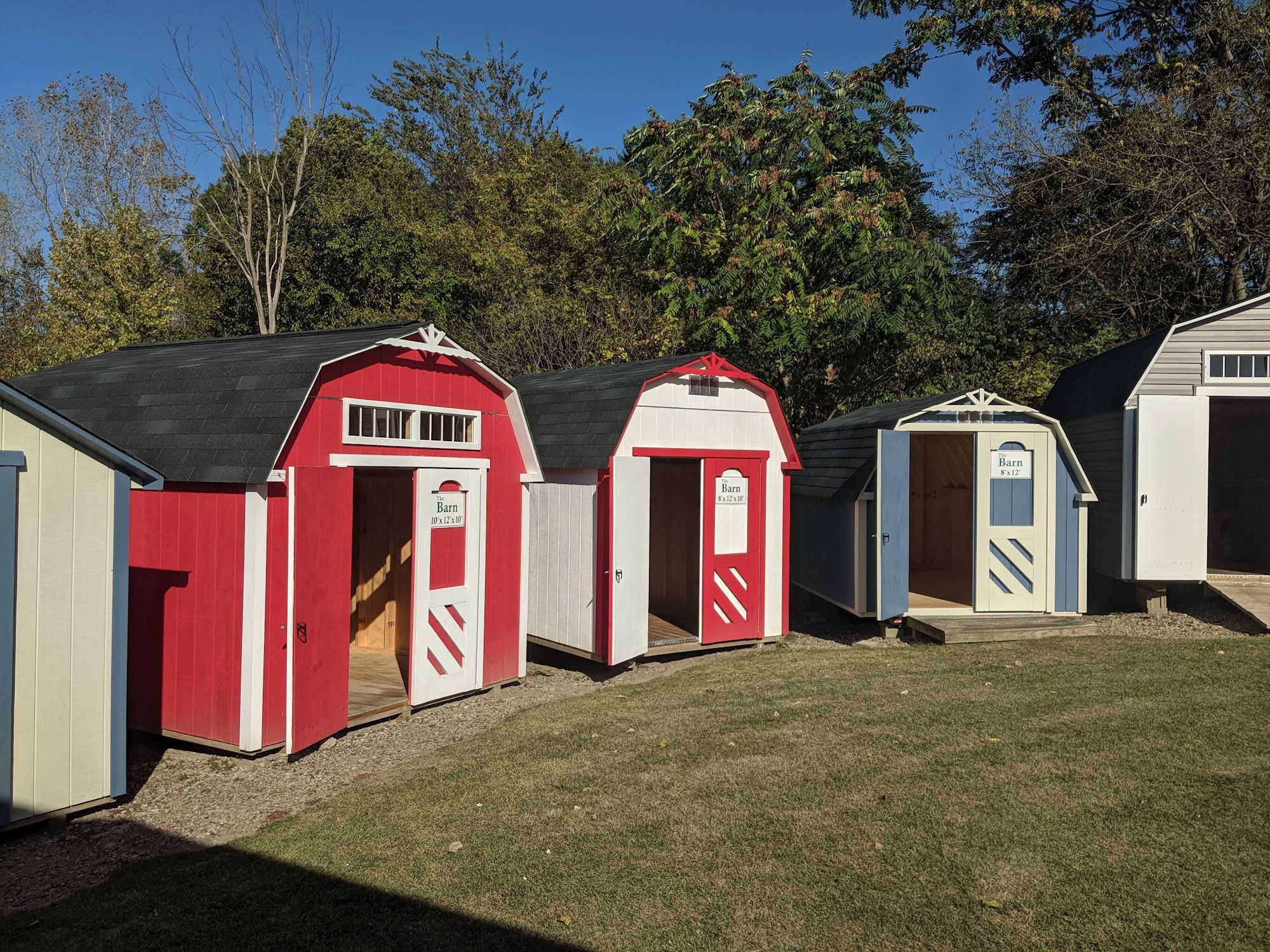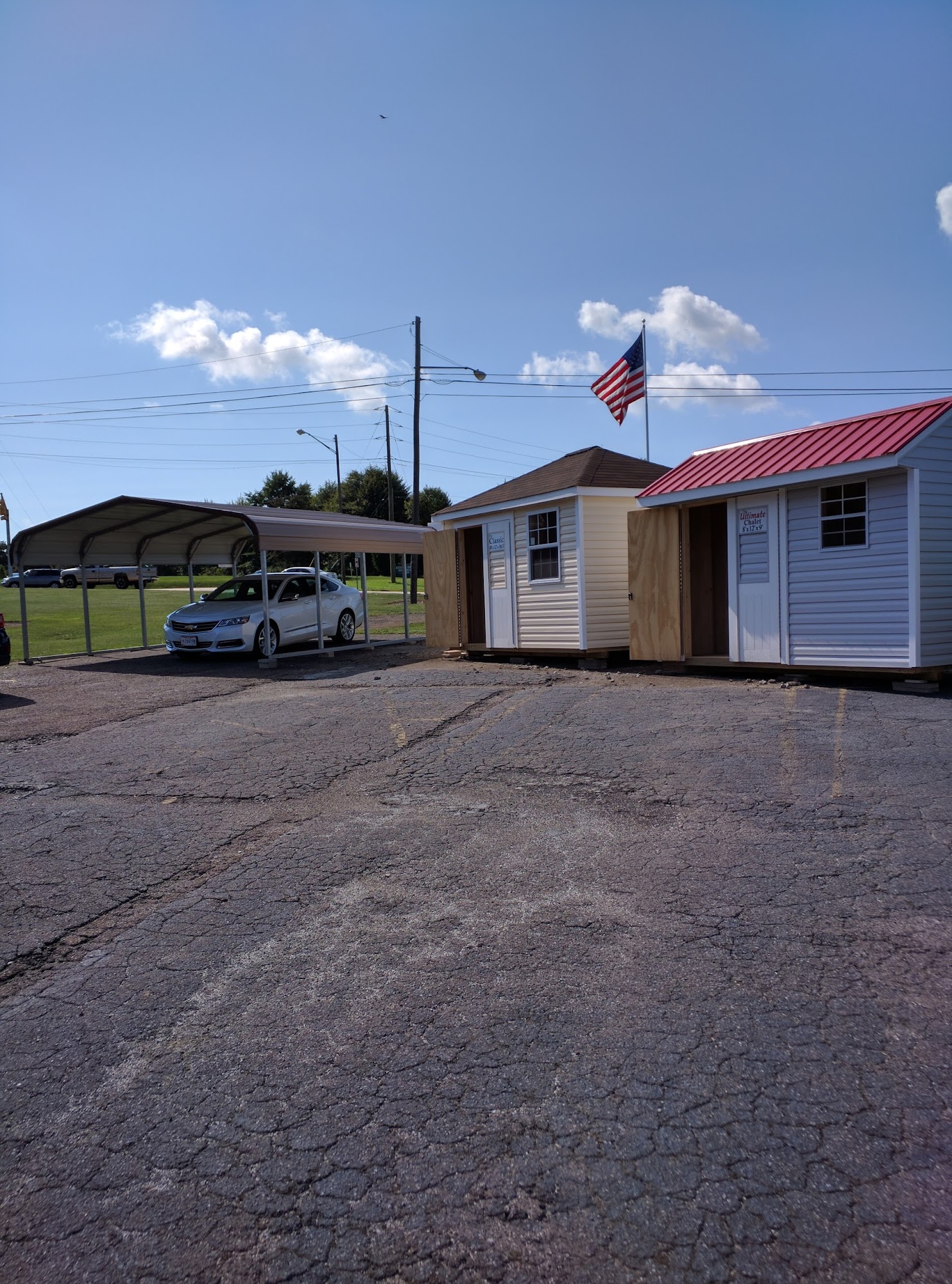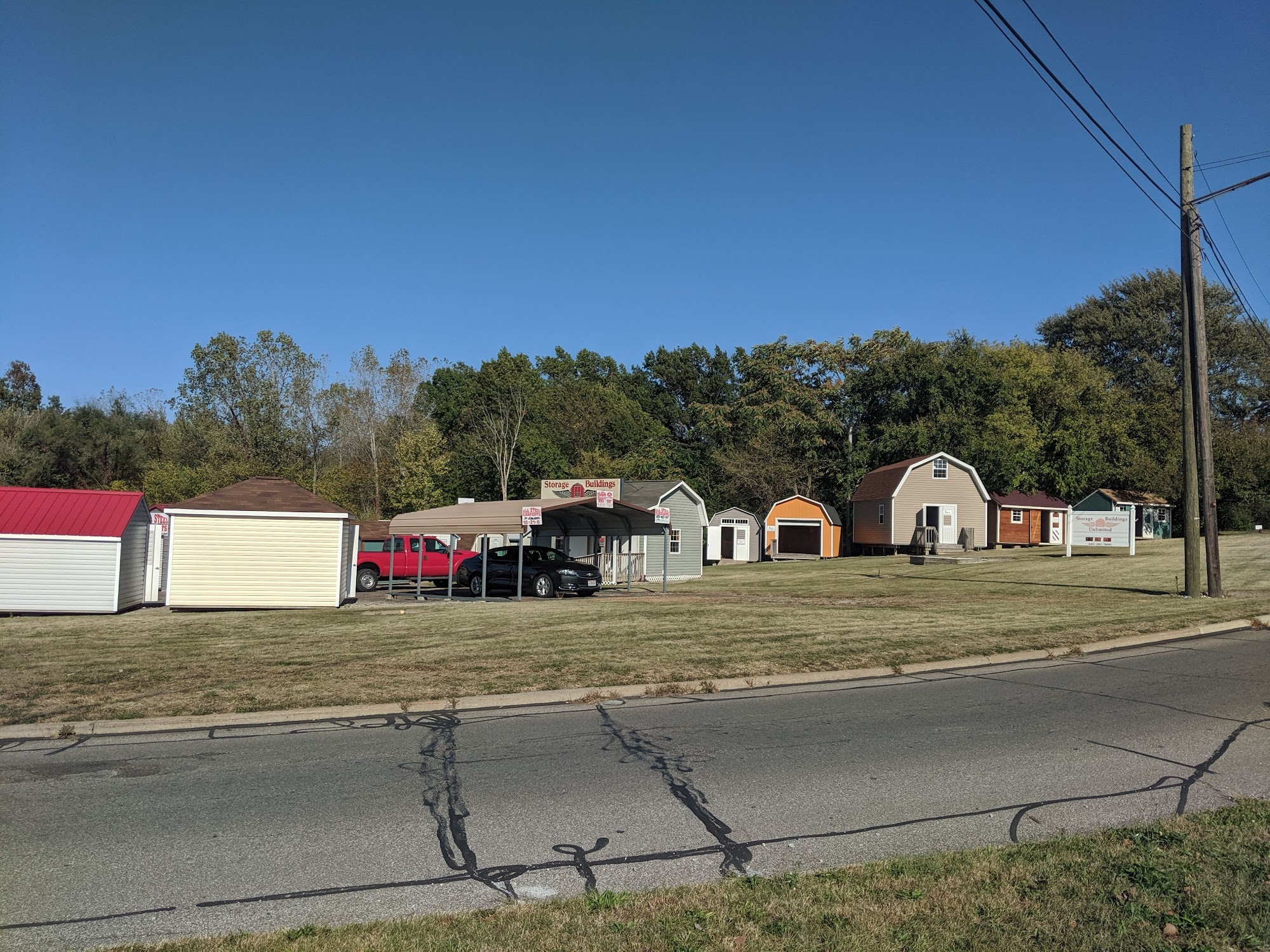 Display sales lot for Storage Buildings Unlimited. Superior built-on-site storage sheds. Serving N.E.Ohio since 1991