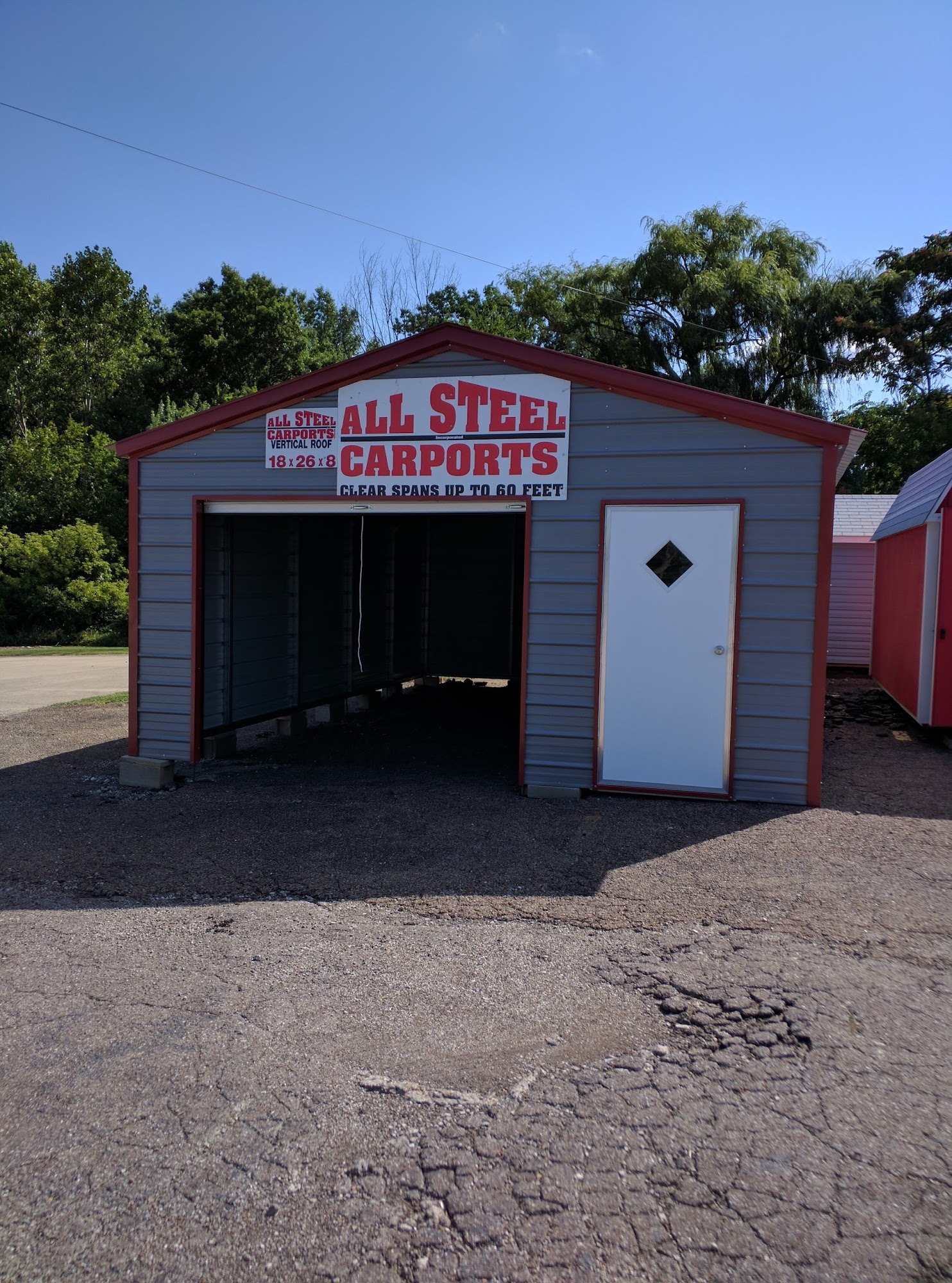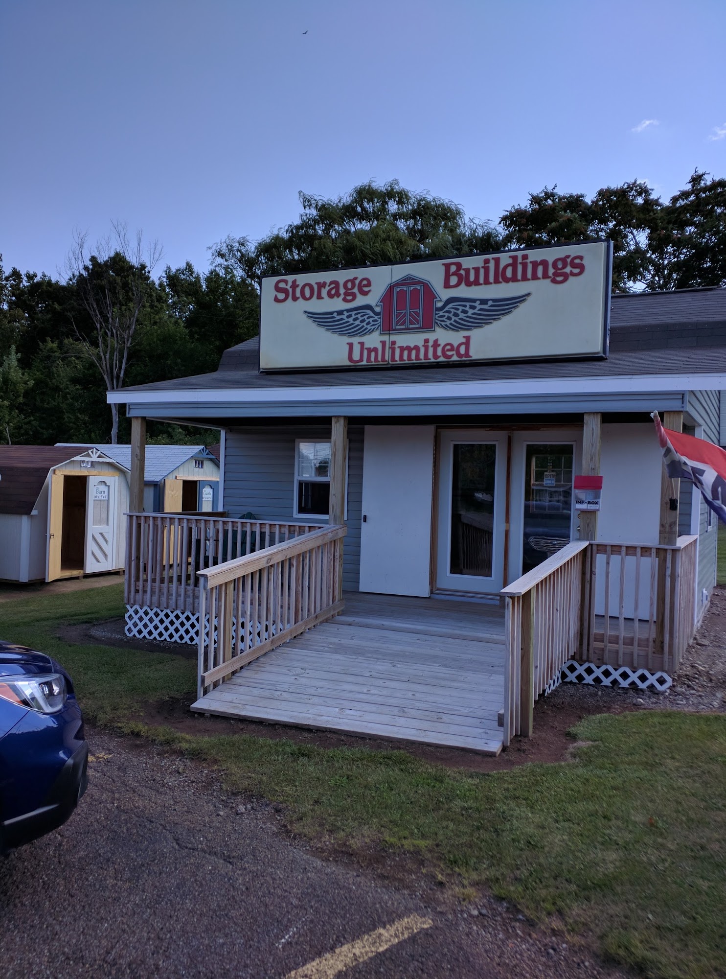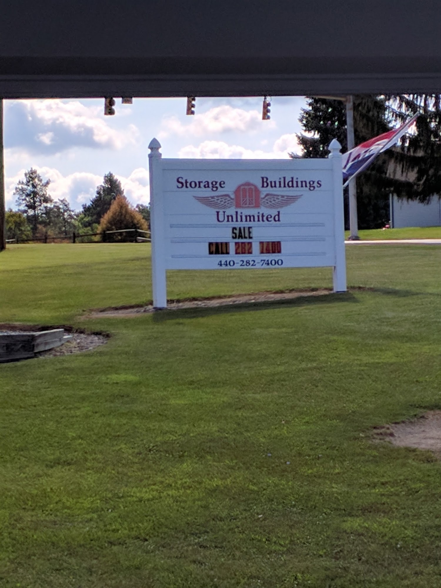 Display sales lot for Storage Buildings Unlimited. Superior built-on-site storage sheds. Serving N.E.Ohio since 1991