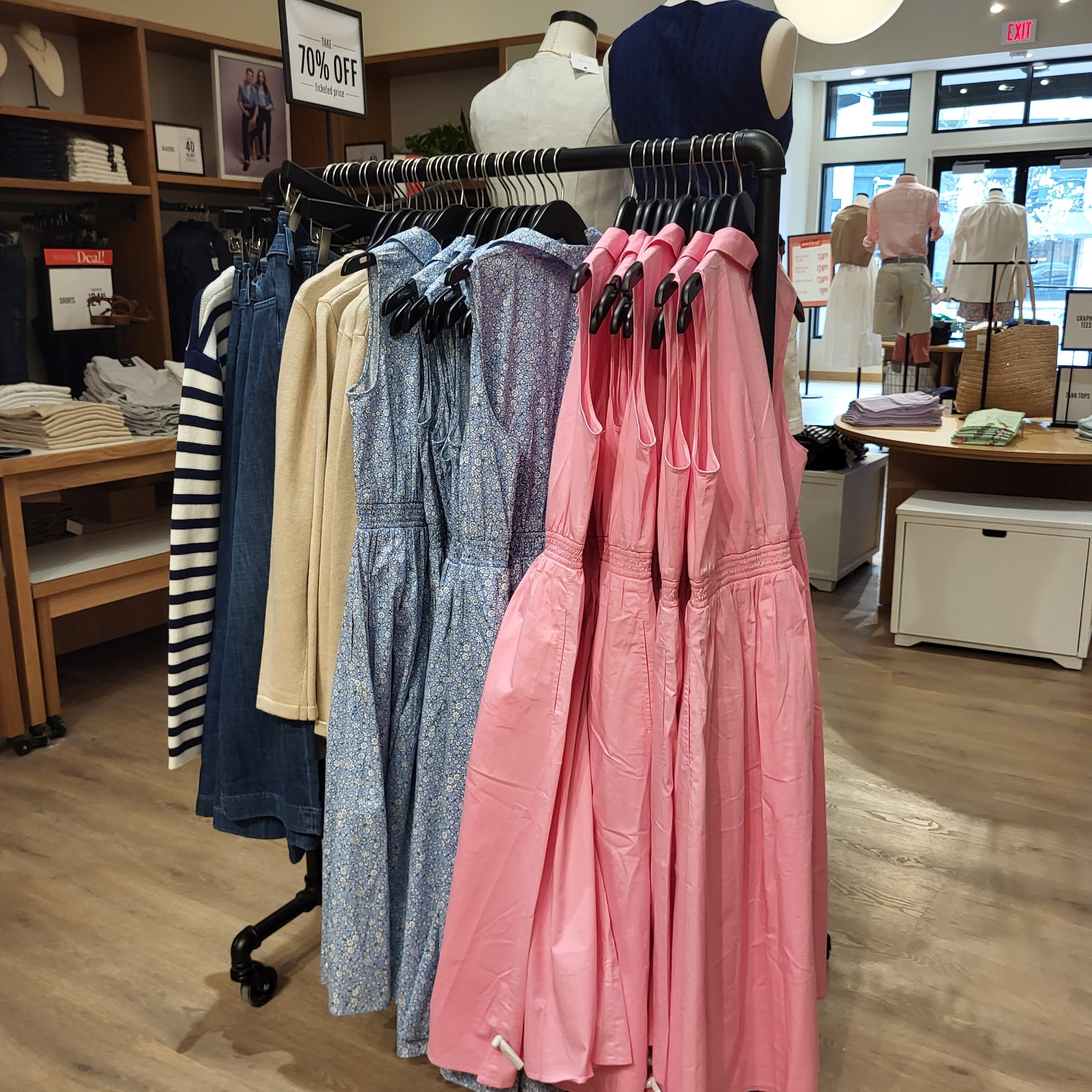 Good sales prices for very attractive clothes! The store is bright and appealing inside and very clean. The fitting rooms were clean and comfortable. We bought a lot here for all members of the family, including teen, mom, dad and grandma! We look forward to shopping here again!