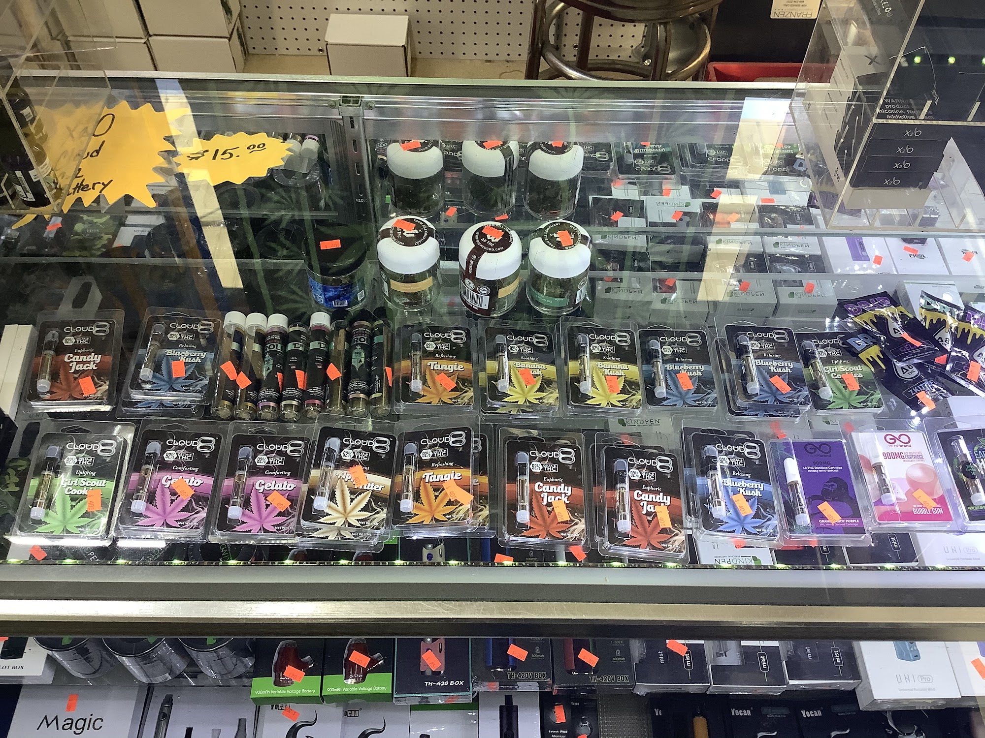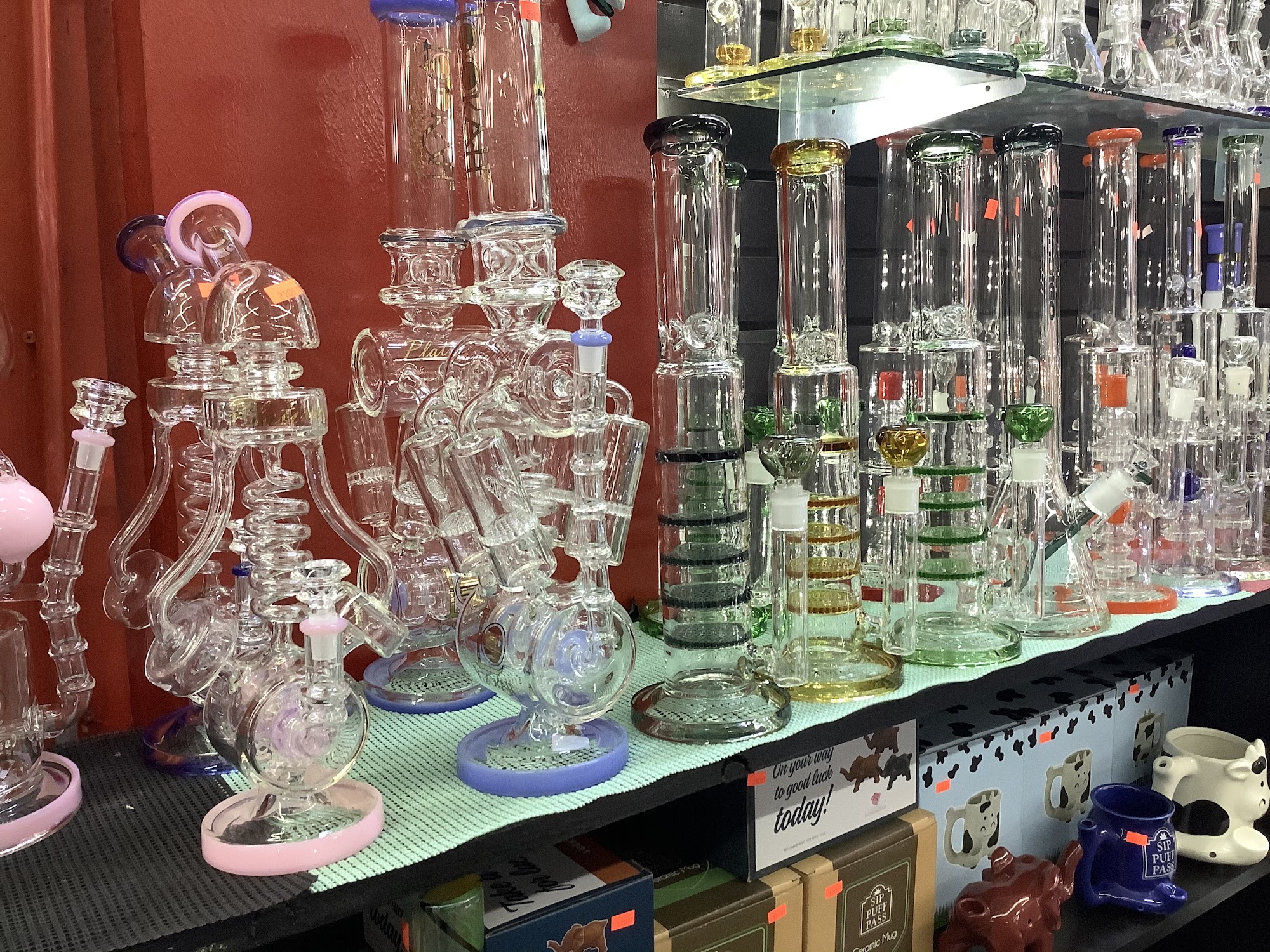 They have a very large selection of pipes and some accessories although I would like to see more accessories in the future they still had a fairly decent selection of bangers and bowls. They also had a huge variety of tobacco and THCa products to choose from. The employee working was very helpful and attentive.