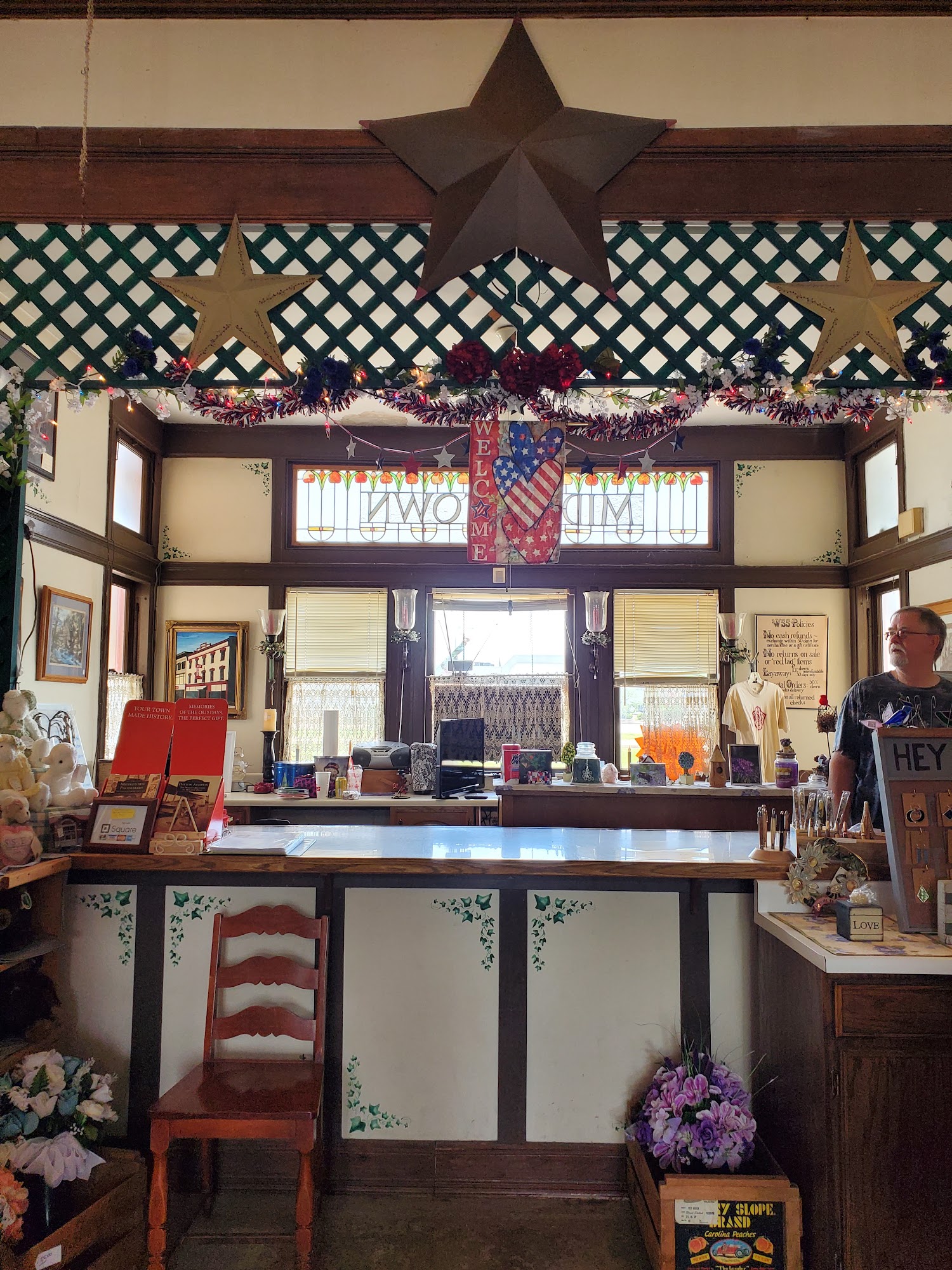 A unique family-owned gift shop business, now managed by second generation! Our mission is "We strive to remain on track with a legacy recognizing local crafting talent while celebrating customer connections as friends and family." Our crafters specialize with hand-painted items; turned wooden bowls with candles, wooden vases, pens, ice cream scoops and much more; stained glass earrings; local photography on multiple surfaces including new notebooks, journals, puzzles & framed pieces; floral pieces, including wreaths, cemetery arrangements & seasonal pieces; crocheted hats, bags & coasters, custom pet portraits in stained glass. We carry 10 candle lines, Christmas room, cards, seasonal decor. Friendly family service! Handicap accessible.