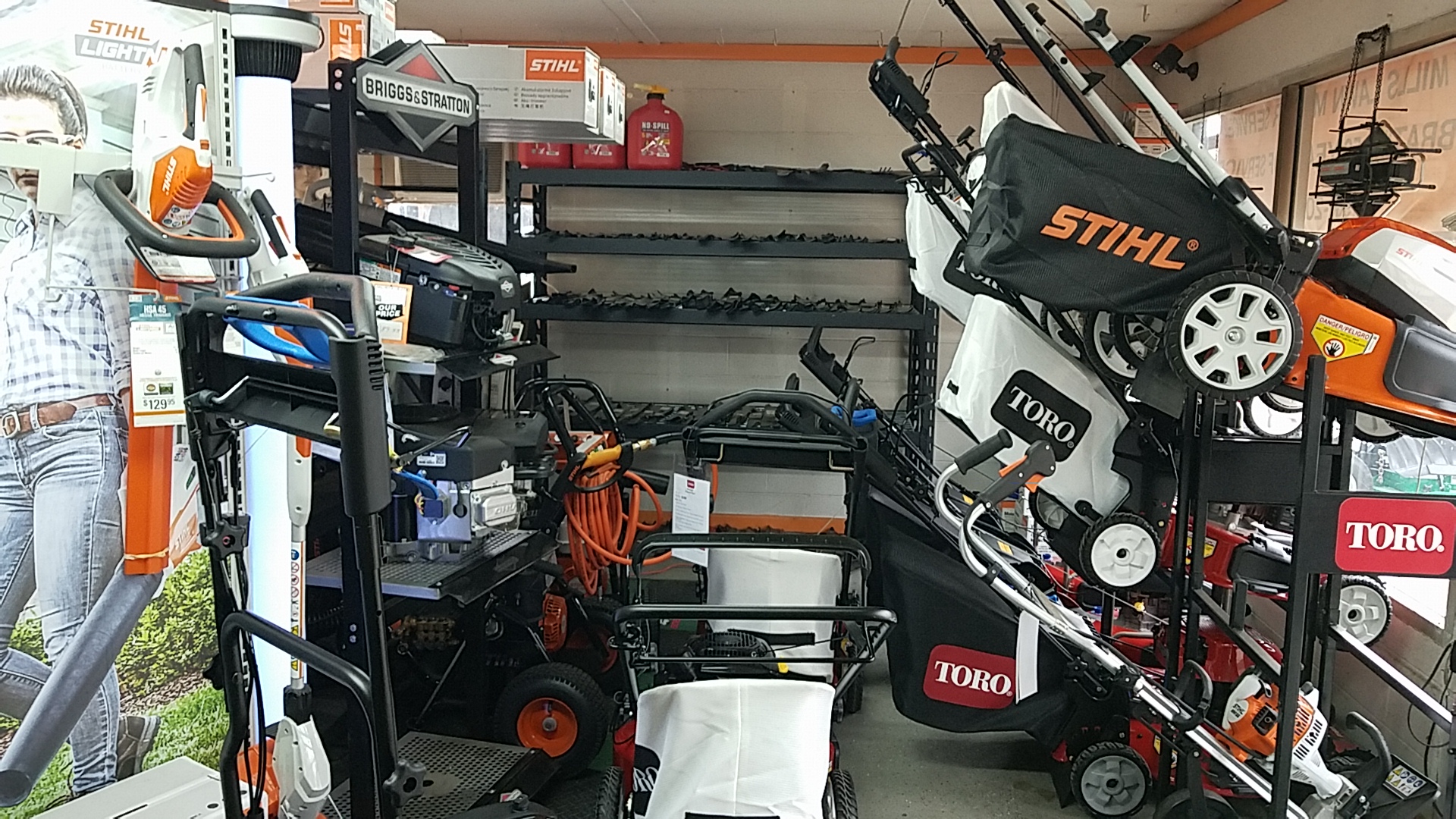 We sell and service many types of outdoor power equipment. Stihl, Toro, Bob Cat, and many others. We also have Snow Throwers