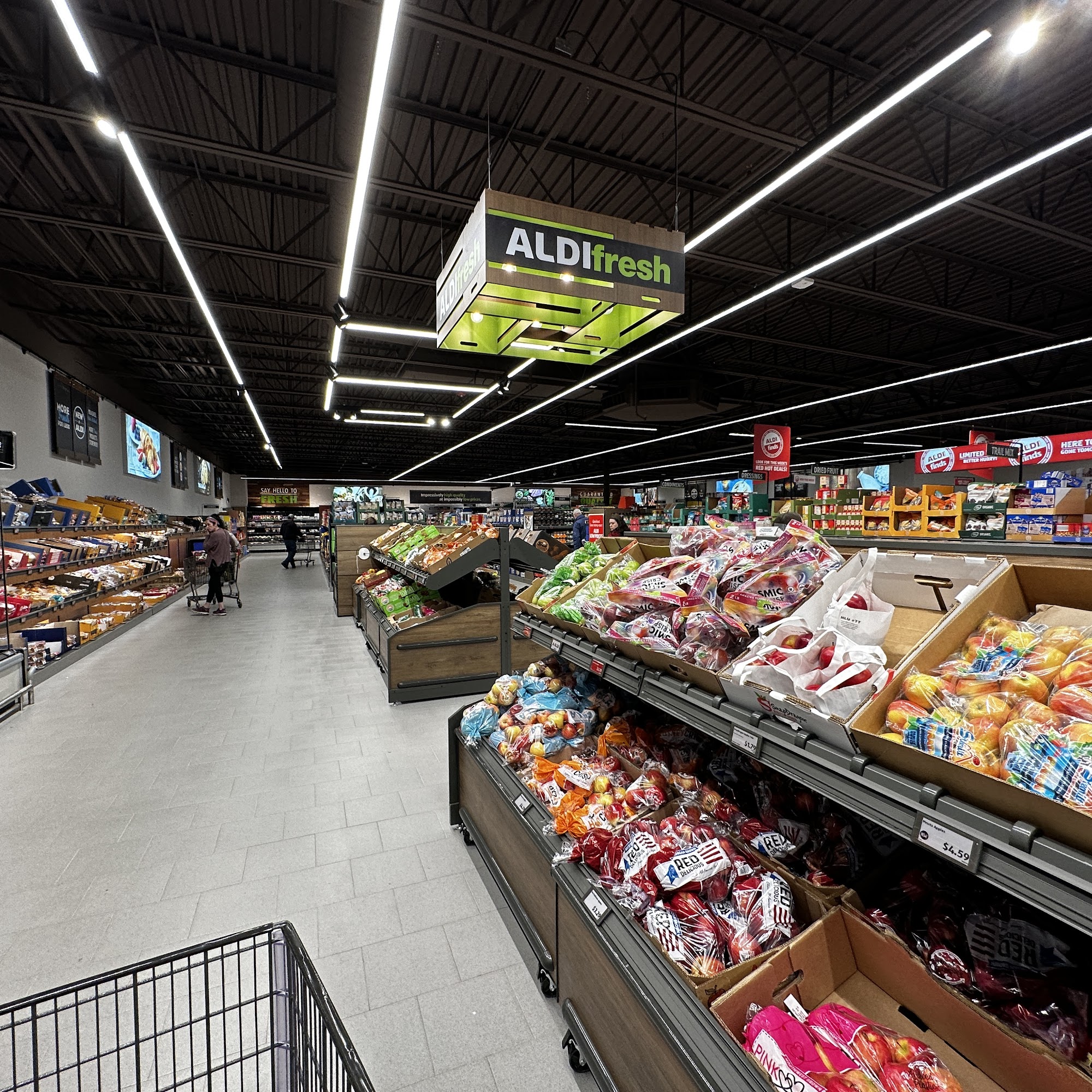 ALDI in New Albany offers everyday low prices on quality groceries and home goods. Customers can find fresh meat, seafood, produce, deli items, baked goods, and frozen treats at affordable prices. The store is well-stocked, making it easier to find everything on shopping lists, unlike some other grocery stores. Shoppers appreciate the unique home goods and special items available, including popular wines at great prices. While the selection of organic products is commendable, some customers note that stock availability can be inconsistent. The store's layout is user-friendly, and the staff is described as helpful and friendly, contributing to a positive shopping experience. Customers can also order online for curbside pickup or delivery if they are short on time. Overall, ALDI is recognized as a fun place to shop, offering good deals and a variety of products, but shoppers may need to visit other stores for certain items.