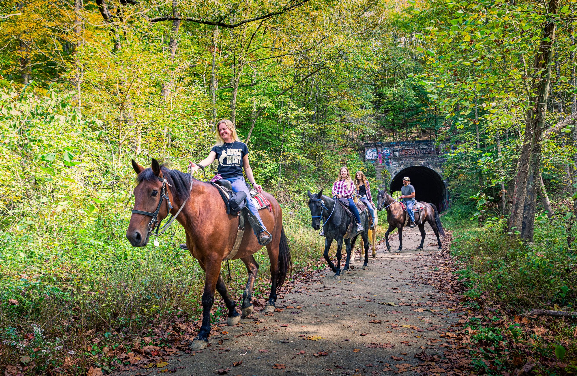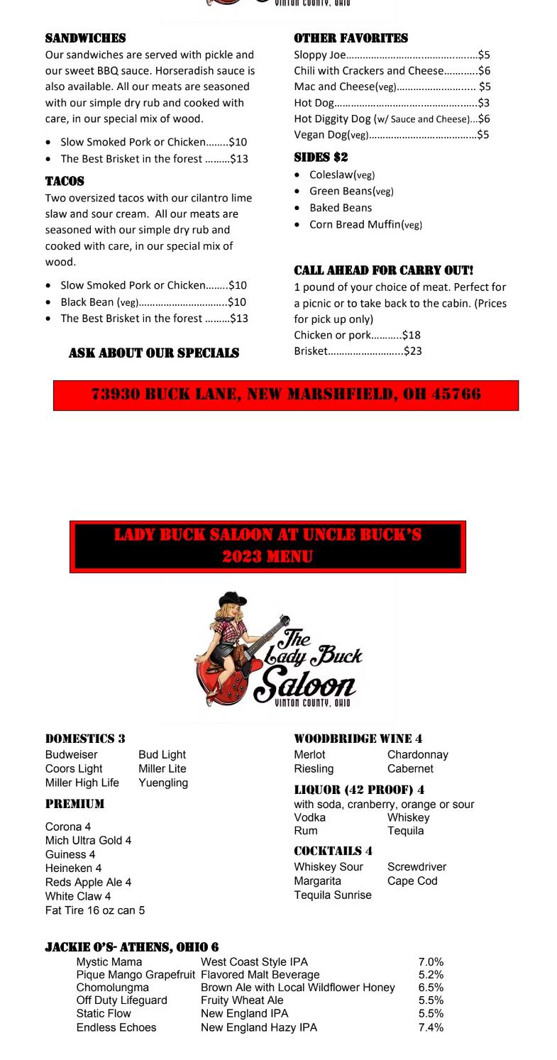 Uncle Buck's Riding Stable and Dance Barn offers scenic, guided horseback rides through the Zaleski State Forest near Lake Hope State Park. Guests can choose from the Coal Bucket Trail (1 hour), Lookout Rock Trail (2 hours), or the Moonville Tunnel Trail (2.5 hours). The facility also features The Lady Buck Saloon, serving food, beverages, beer, and wine, as well as hosting family BBQs with live entertainment. Event and banquet facilities are available for weddings, parties, and other occasions. Reviewers praise the friendly staff, well-trained horses, and overall enjoyable experience, whether for beginners or experienced riders.