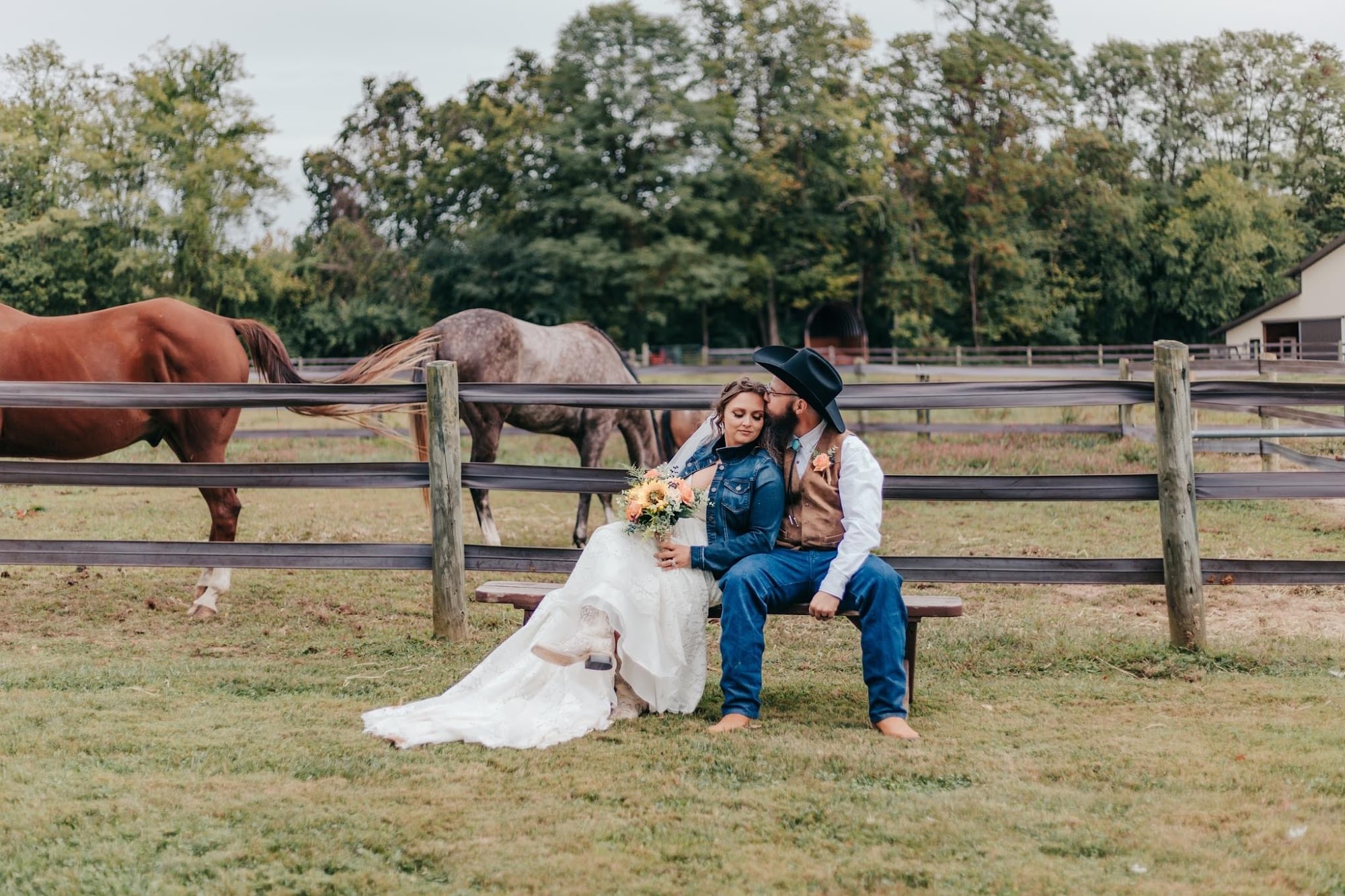Honeysuckle Ranch is a breathtaking and gorgeous wedding venue, described as a dream come true and absolutely amazing. The property features a beautiful reception barn and ceremony area with great views and many excellent spots for pictures. It offers a magical place to cherish, complete with a bridal suite and an already decorated barn. The well-behaved horses that run around the property are a hit, providing fun for kids and guests who love to interact with and feed them. The experience is made seamless by attentive, sweet, and accommodating staff who are helpful, communicative, prompt, and knowledgeable throughout the entire planning journey.