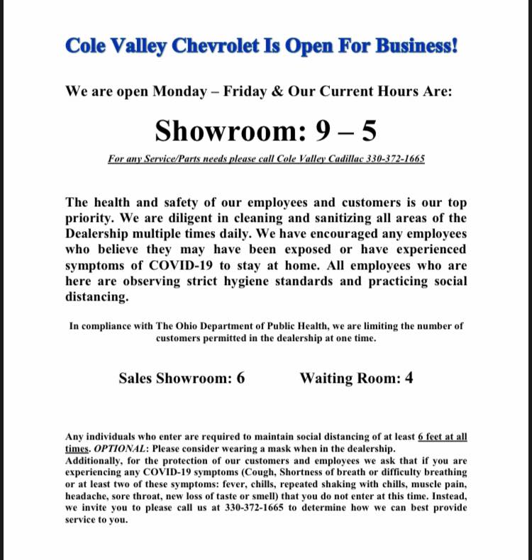 First time buying a vehicle from Cole Valley Chevrolet! It was a great experience and i would buy another vehicle from them!