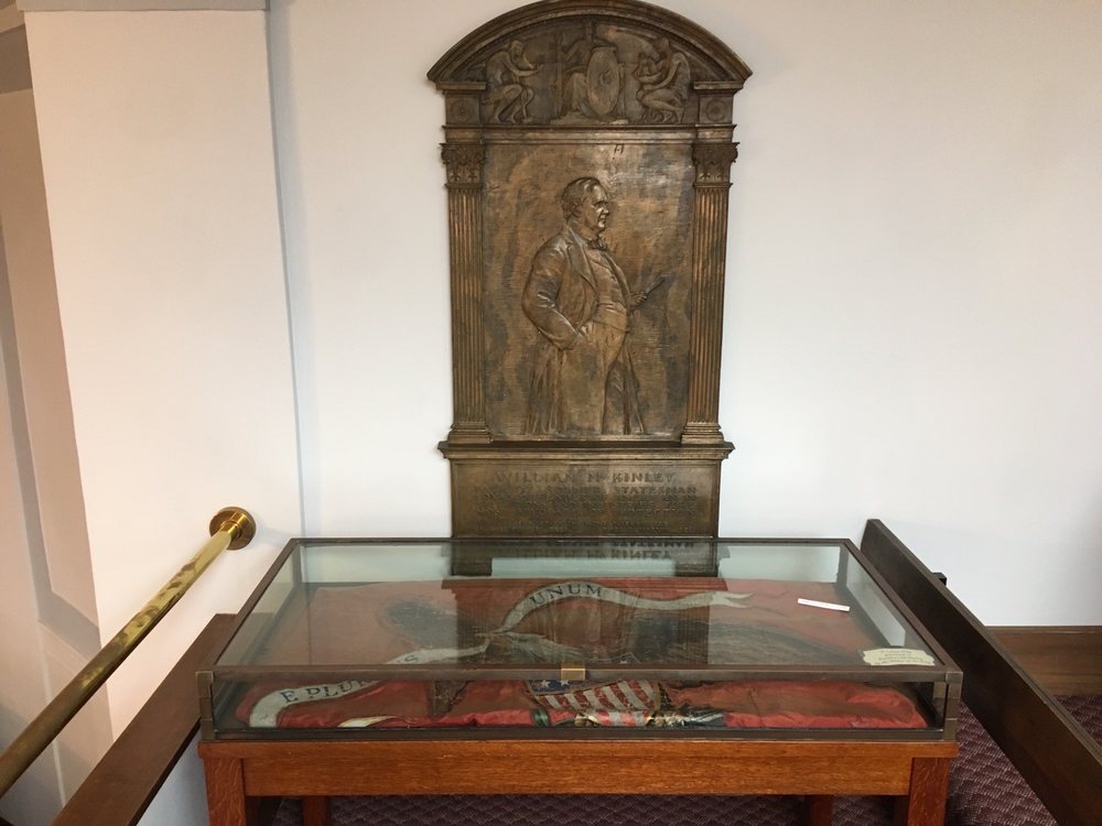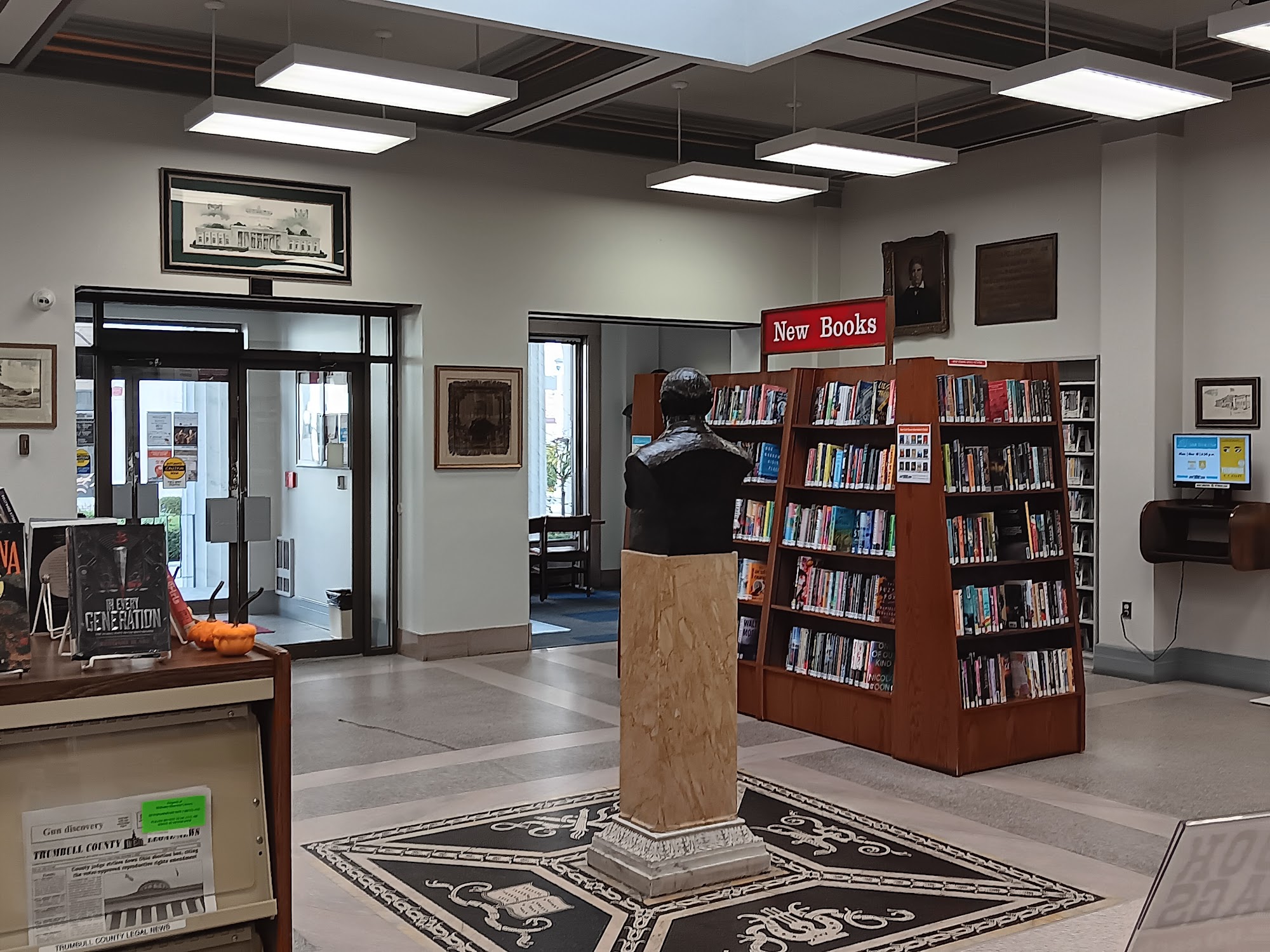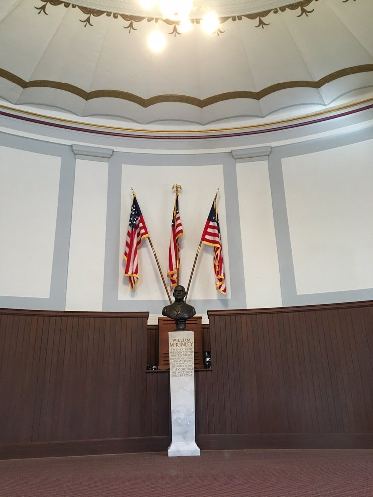 McKinley Memorial Library is a beautiful historical library located in a historic building. The venue is a breathtaking backdrop, boasting formidable statuary and classic columns. Inside, visitors will find a wonderful public library with friendly and helpful staff. The library offers a good selection of books, DVDs, and games, with the ability to get items from other branches if they don't have a particular book or game. The library is an integral part of the community, encouraging people to get a library card and join various groups like chess club and movie night. It features a gorgeous interior with glass floors, a children's room, and a computer room. New books are available and ready to be taken home. The library also hosts events like book sales. While visitor parking can be challenging, the beauty of the venue and the friendly, helpful staff make it a worthwhile destination. The memorial museum, sharing space with the library, has limited hours.
