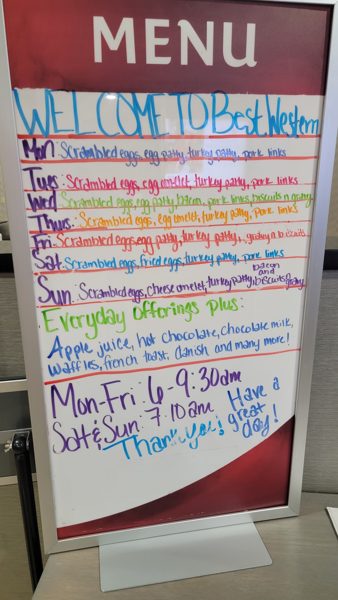 Staff was amazing , the room was amazing , slept great. Was able to early check in with a fee I didn't care tbh. After driving 9 hours just wanna get in and take a nap. Everything was great. They let my wife get something from breakfast area even after it was over. Thank you so much for treating us good.