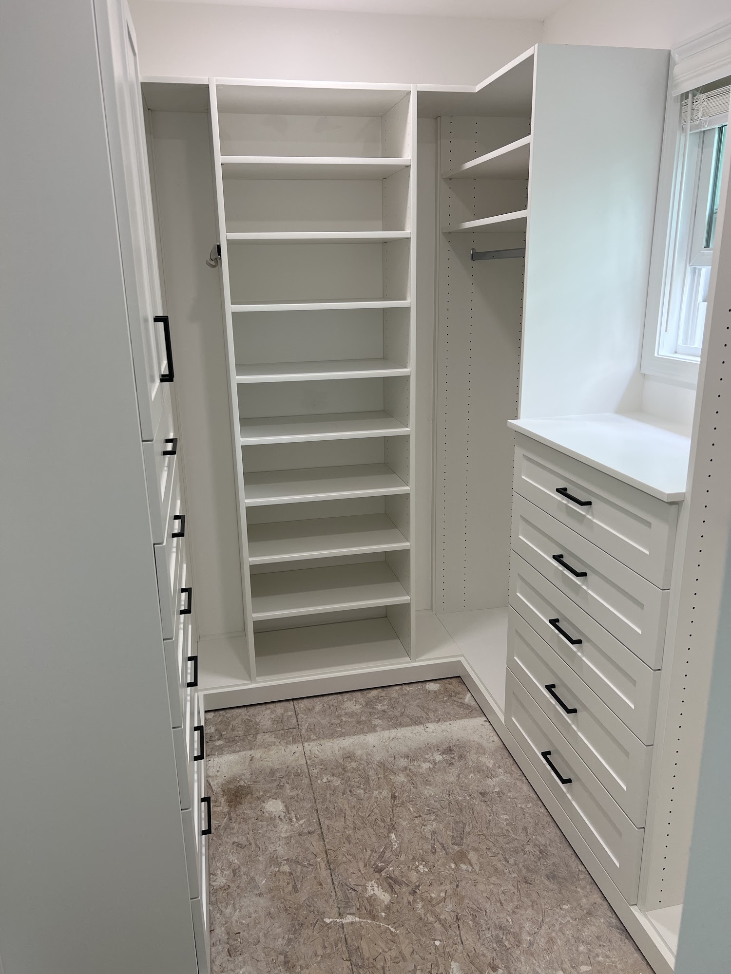 Cindy our salesperson was excellent and knew the product offering inside & out. Installation was timely and looks great! No problems!Service: Custom closet design & installation