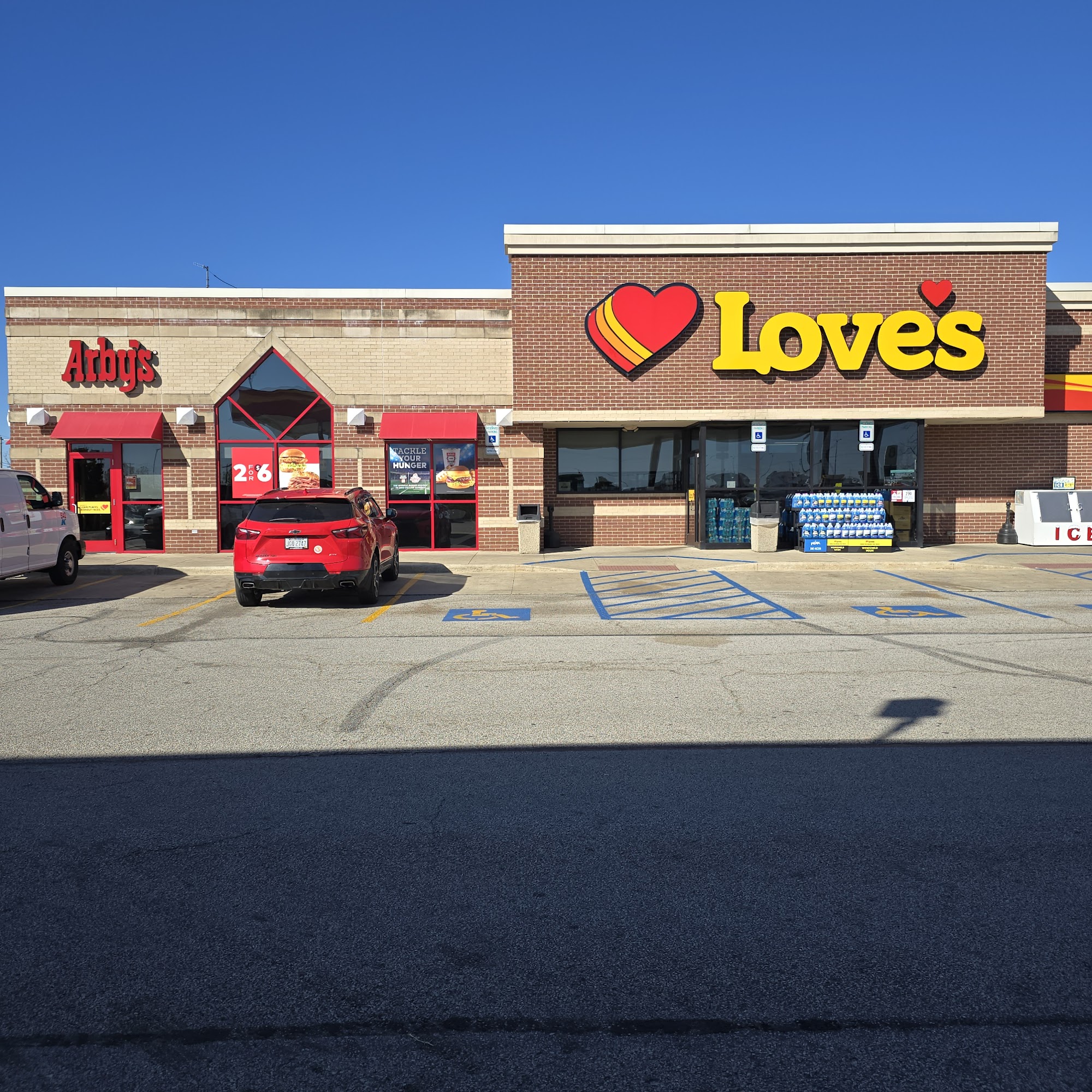 This place has just about everything you can think of. It is very clean, very well organized and has plenty of handicap spots. Every gas selection you can think of, plus car rental, showers for truckers and a fuel desk. The stop is always busy, parking full, but gas prices are lower than surrounding communities and the Love's Reward card gives an extra $.10/gal off every fill up. Best cappuccinos and a full tank of gas without feeling cheated. Staff keep gold wedding band safe. Showers need work and washers and dryers need replacing, but the place is a go‑to travel stop for last years.