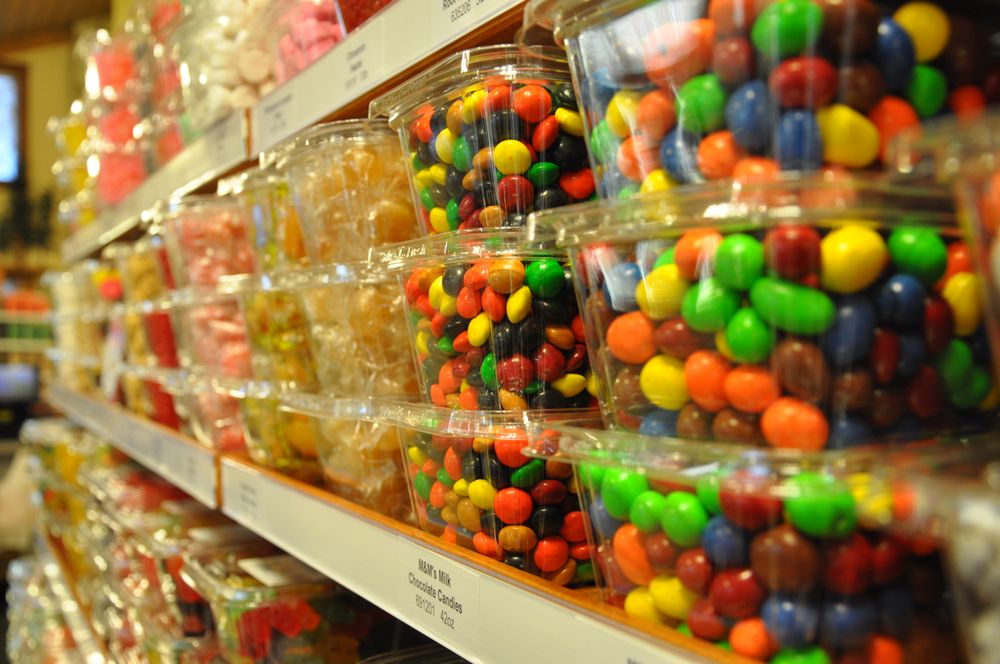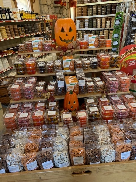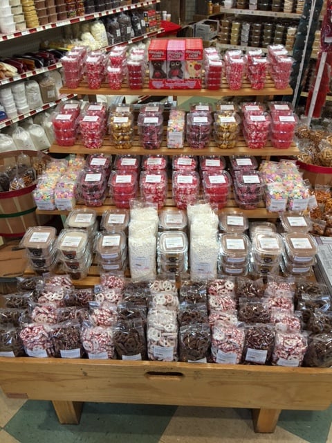 Hugh selection of cheeses and much more candies and even an antique store