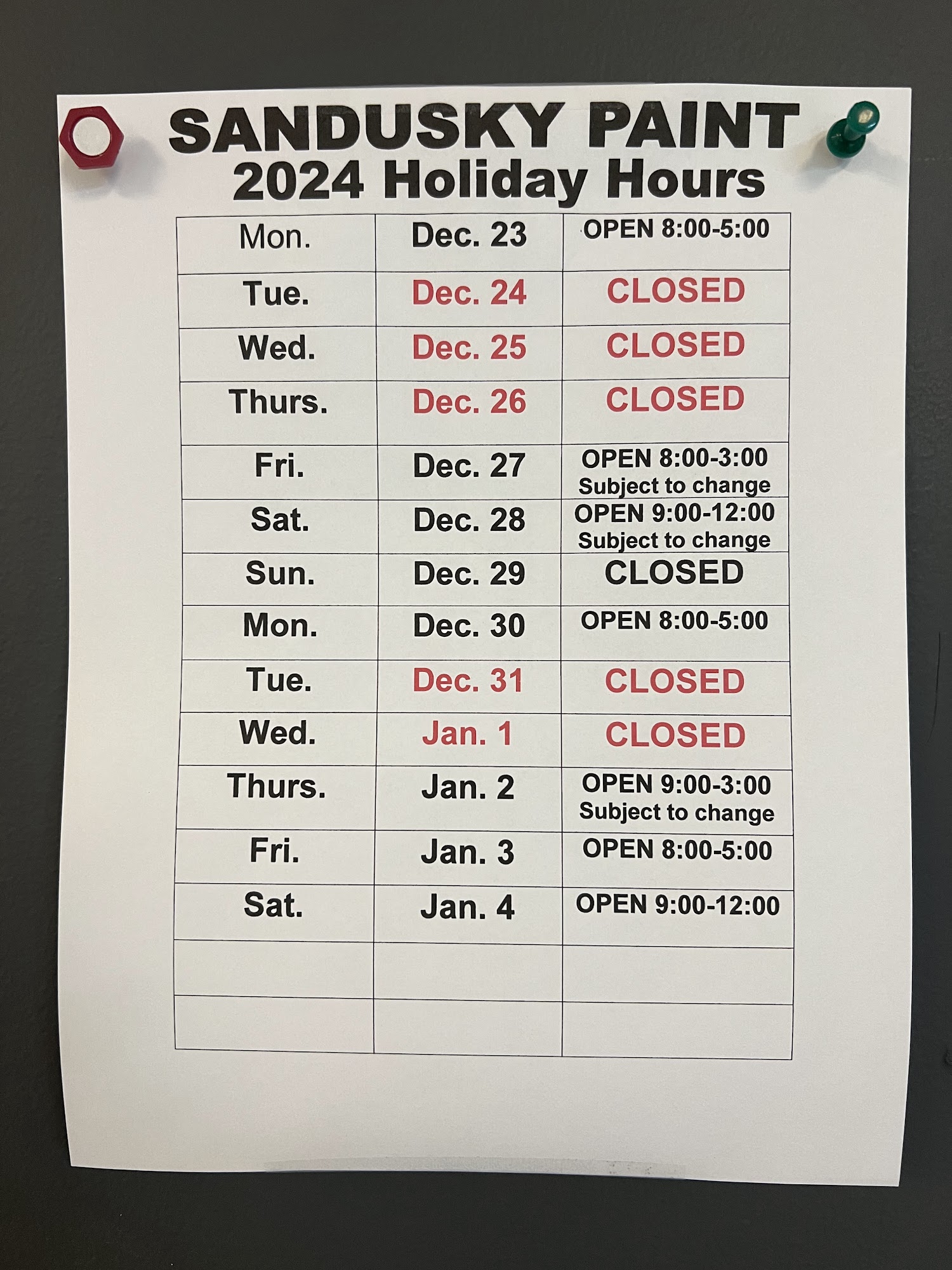 1401 Sycamore Line, Sandusky OH 44870 Hours