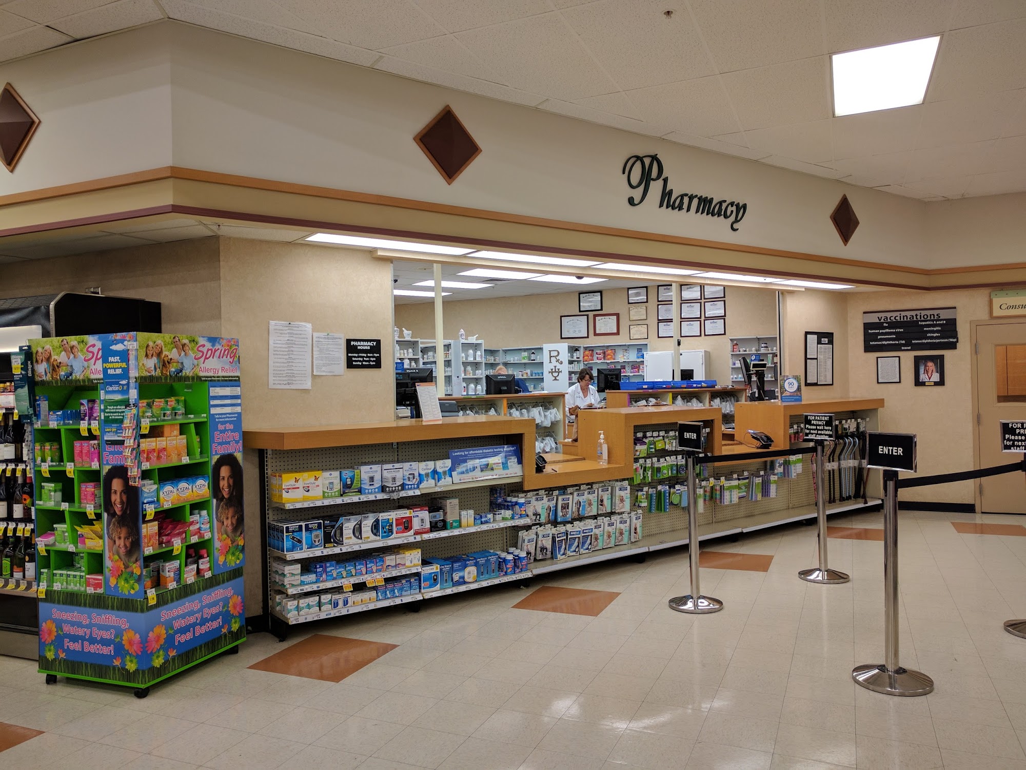 The check out service sucks in the afternoon there is a line all the way to the pharmacy because they can't keep the self check outs open. Total disaster for such a busy time.