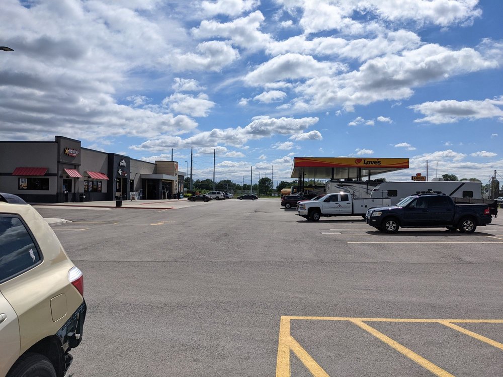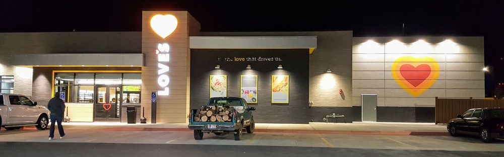 Love's Travel Stop is highly praised for its cleanliness, friendly staff, and thoughtful amenities. Travelers appreciate the well-stocked store with good lighting, cold candy, and neat souvenirs. The showers are large and well-maintained, while the laundry area is clean, though some mention occasional issues with hair on the washers. The location offers 24/7 hot food, a new truck wash, and outlets at every table for charging devices, making it very convenient for travelers. The gas prices are generally good, and pumps rarely malfunction. The facility is designed with care, featuring accessible elements such as lower soda machine buttons for wheelchair users and unique touches like heart-shaped door handles. Visitors enjoy the neat and welcoming atmosphere, and many consider it one of their favorite stops. However, feedback about the dog area indicates it lacks shade, water, and grass, though it’s still better than walking dogs on the roadside. Overall, Love's Travel Stop combines cleanliness, helpful service, and thoughtful features, making it a top choice for travelers seeking comfort and convenience on the road.