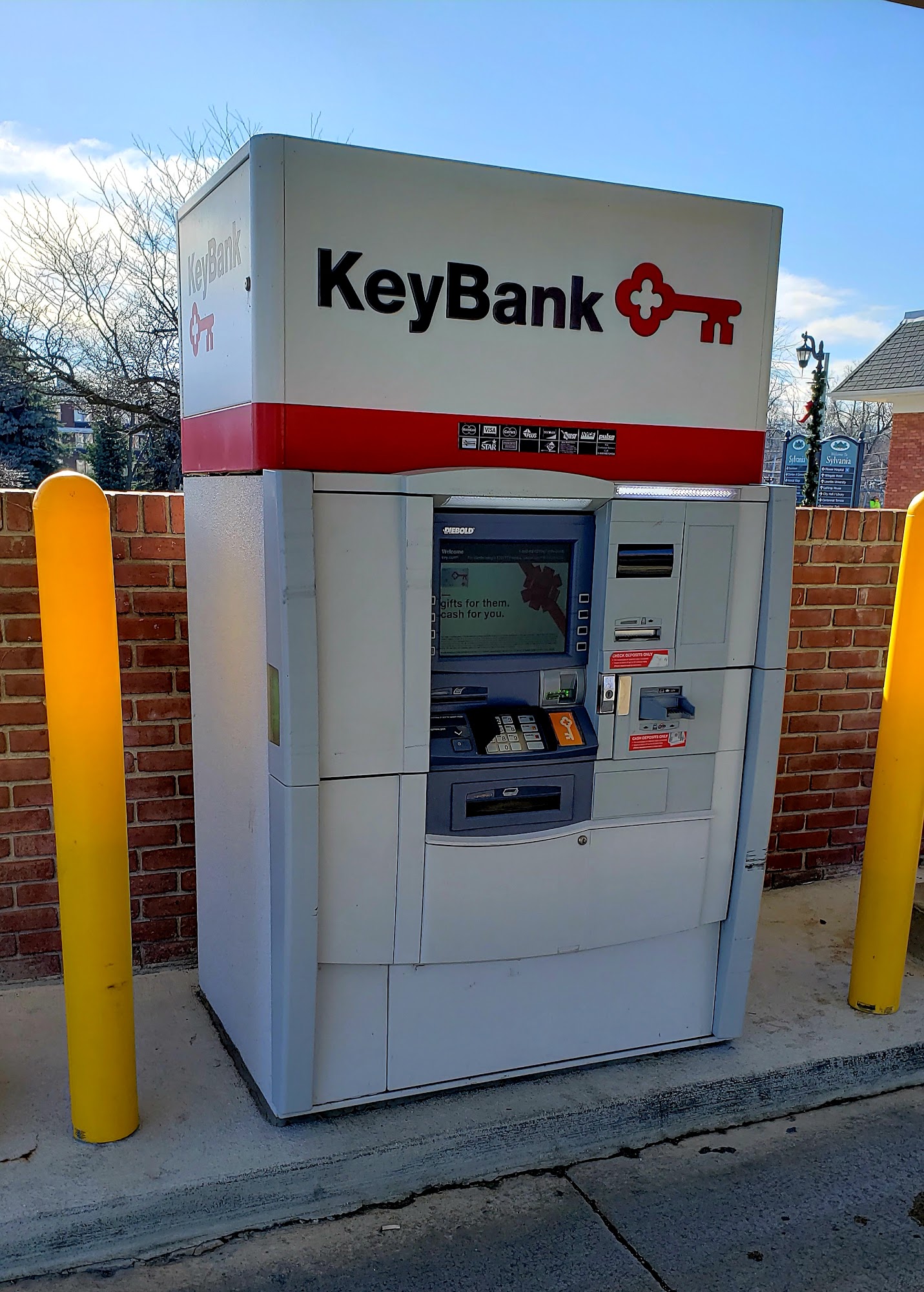 Welcome to your 24 hour Key Bank ATM. This is located where the drive thru used to be, not at the building but under the canopy. You can drive there off Summit street near the intersection of Monroe.