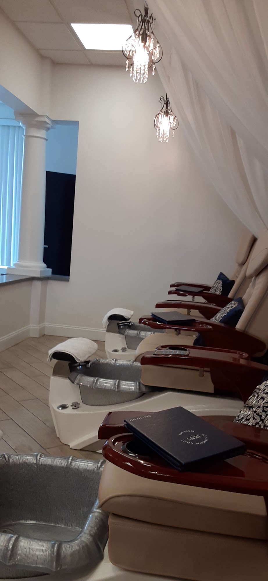 Jonathon Khoi Nail Spa offers gel polish that lasts longer and doesn't smudge, making it worth the extra cost. The staff is known for their kindness and excellent work. The spa features a sophisticated decor and offers a cocktail and coffee menu, as well as adult beverages at some locations, providing a comfortable and relaxing atmosphere for customers.