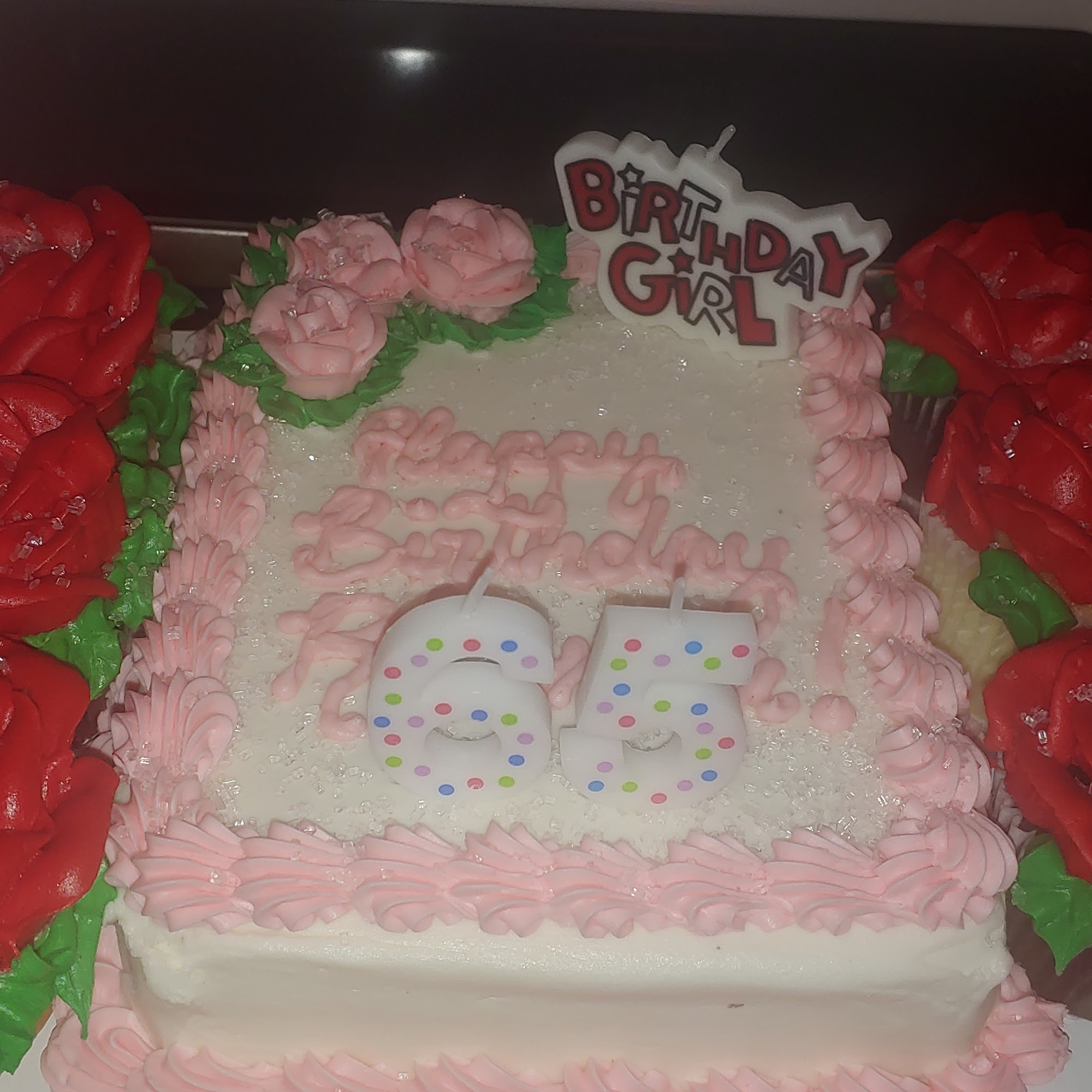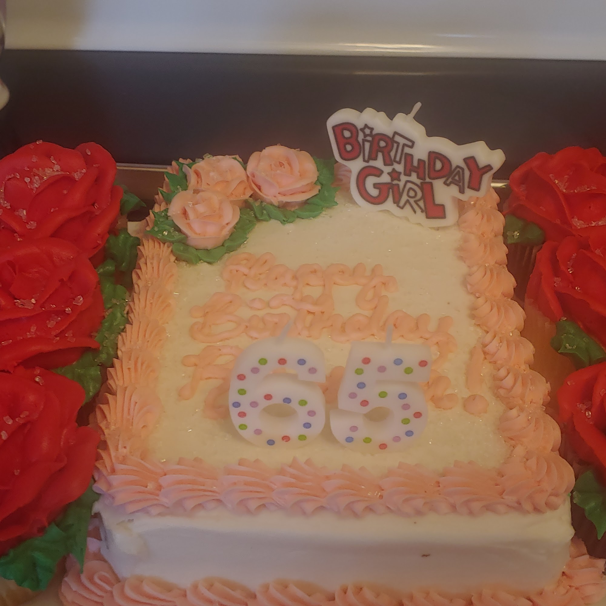 This was my first time getting a birthday cake from Wal-Mart. It was a great choice and was a huge hit with the birthday girl and family. Cake was fresh and delicious. June added the message on the top to make it extra special. Love the cake with a few cupcakes on the side. Chocolate with buttercream icing! Yum!