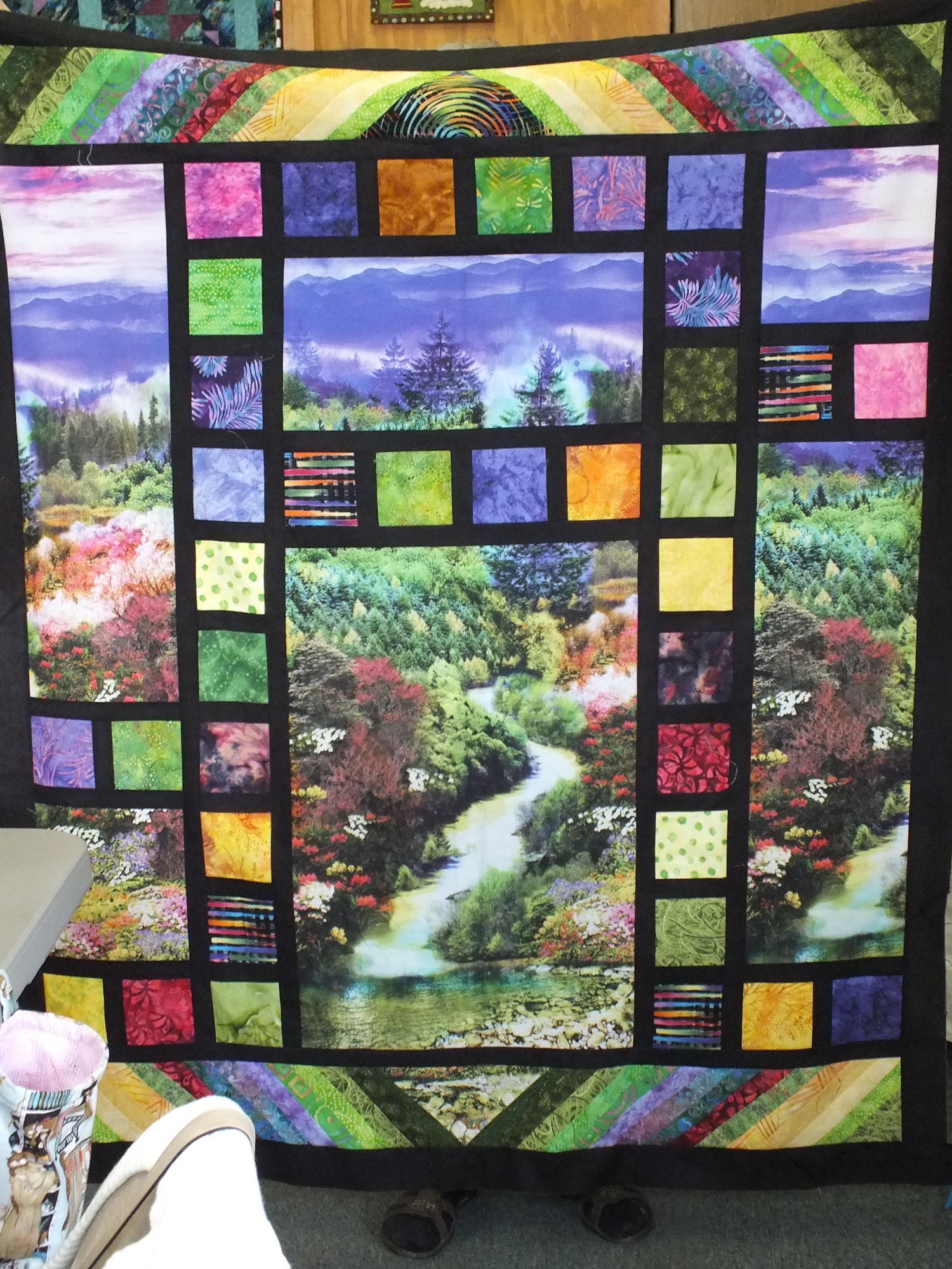 Many beautiful sample quilts are displayed on the walls. Many unique and quality fabrics. Very friendly and knowledgeable.