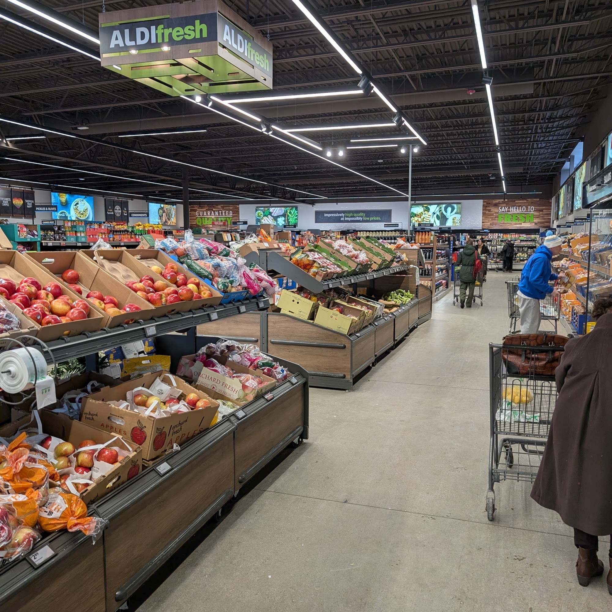 ALDI in Willoughby offers everyday low prices on quality groceries and home goods, making it a popular choice for shoppers. The store features a variety of fresh meat and seafood, produce, pre-made deli items, baked goods, and frozen treats at affordable prices. While the selection may not be as extensive as other nearby grocery stores, customers appreciate the significant savings, often spending half as much compared to places like Giant Eagle or Target. The store is clean, well-stocked, and has a self-checkout option that enhances the shopping experience. Many shoppers enjoy the great vegan and vegetarian options available at low prices. However, during busy times, the single cashier can lead to longer lines, as self-checkout areas may become crowded. Customers are reminded to bring a quarter for the carts and bags for their groceries, as bags are not free. Overall, shoppers find ALDI to be a convenient and economical choice for their grocery needs.