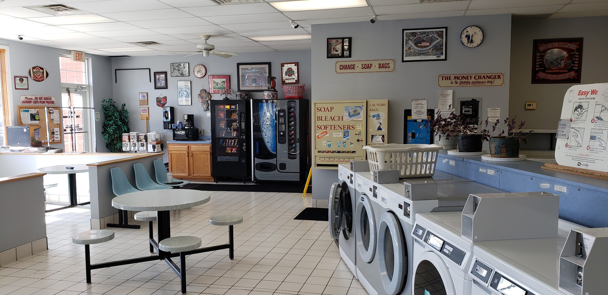 Very helpful. Very large machines. Many available. Clean and inviting. Convenient, vending machines and other amenities. Large and spacious.