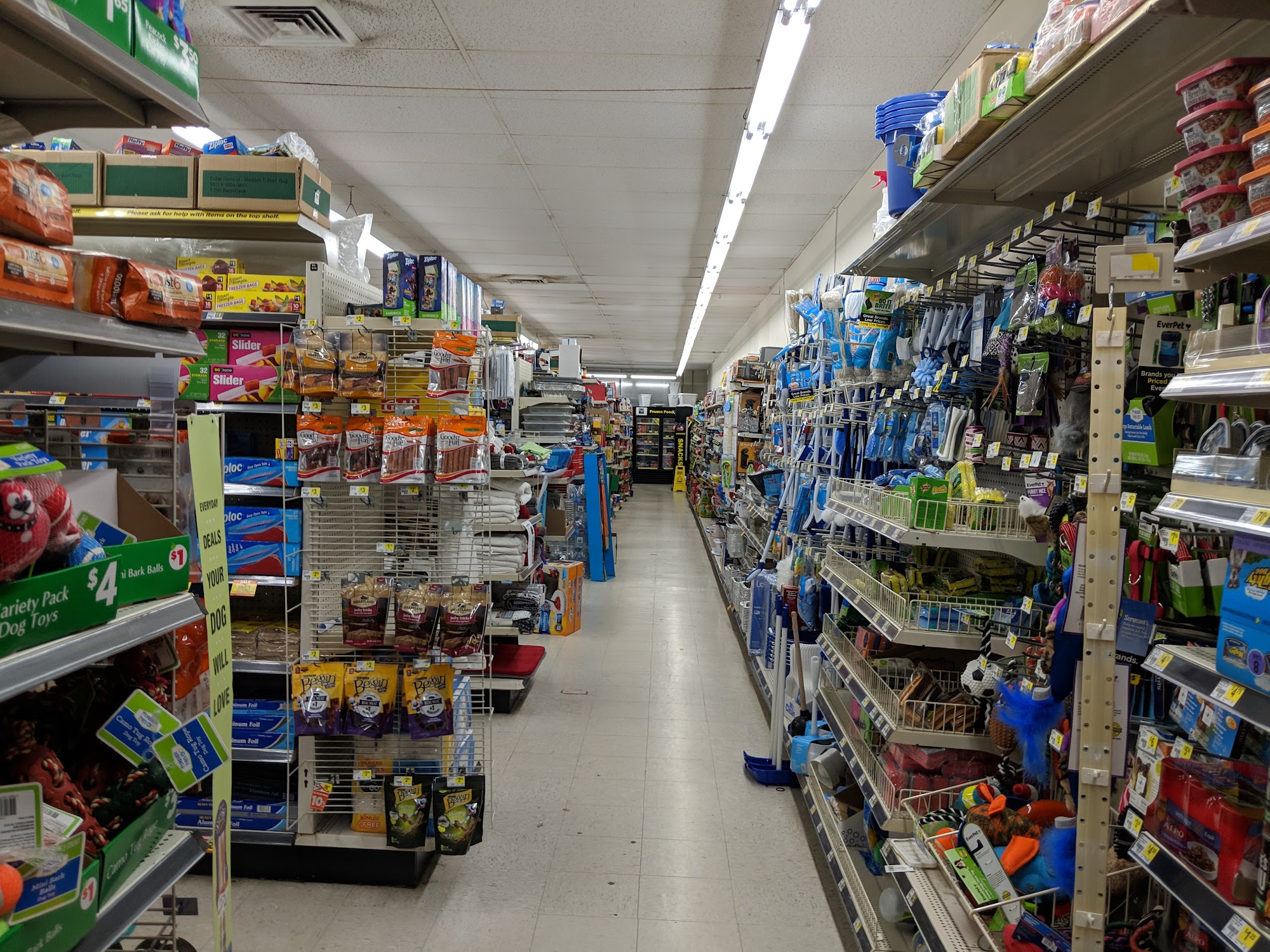 Average DG, not enough employees, disorganized with carts of stock to put up sitting in the aisles.