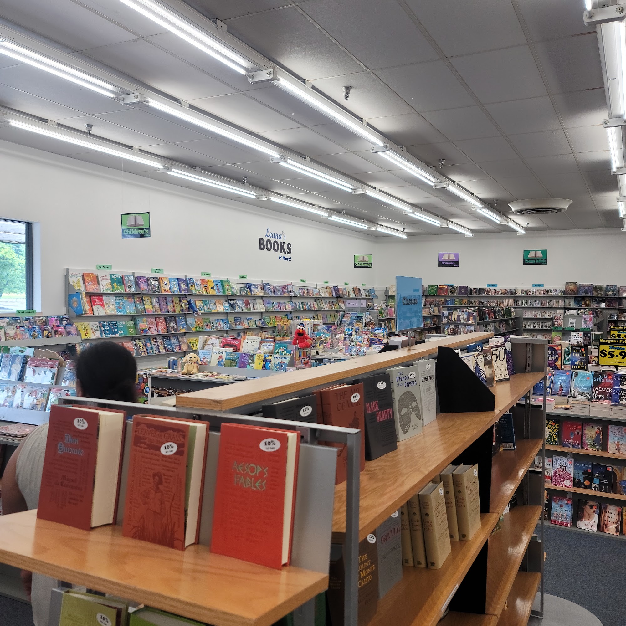 Leana's Books & More is a great bookstore with a big selection of new releases, best sellers, bargain books, and used books. The store has a large discount area and discounts on newer books. Prices are nice, decent, and reasonable. The staff is friendly and helpful, and customers can trade in gently used books for store credit. The store is open, bright, neat, and orderly, with plenty of parking. It is a no‑frills place for books and book related items, and customers say it is worth a drive over. Many people return for the great selection and friendly service.