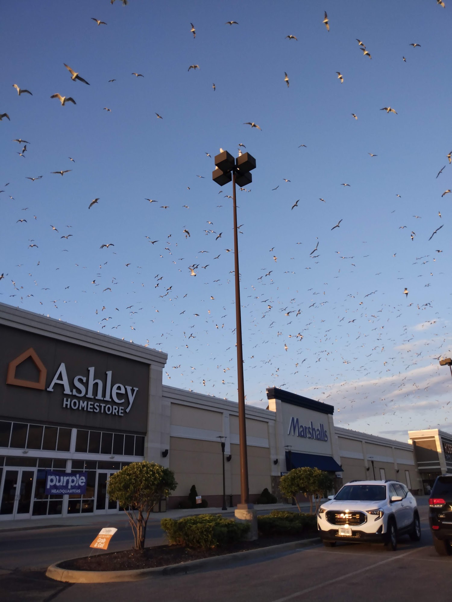 New buildings with lots of parking. Close to major roads.
