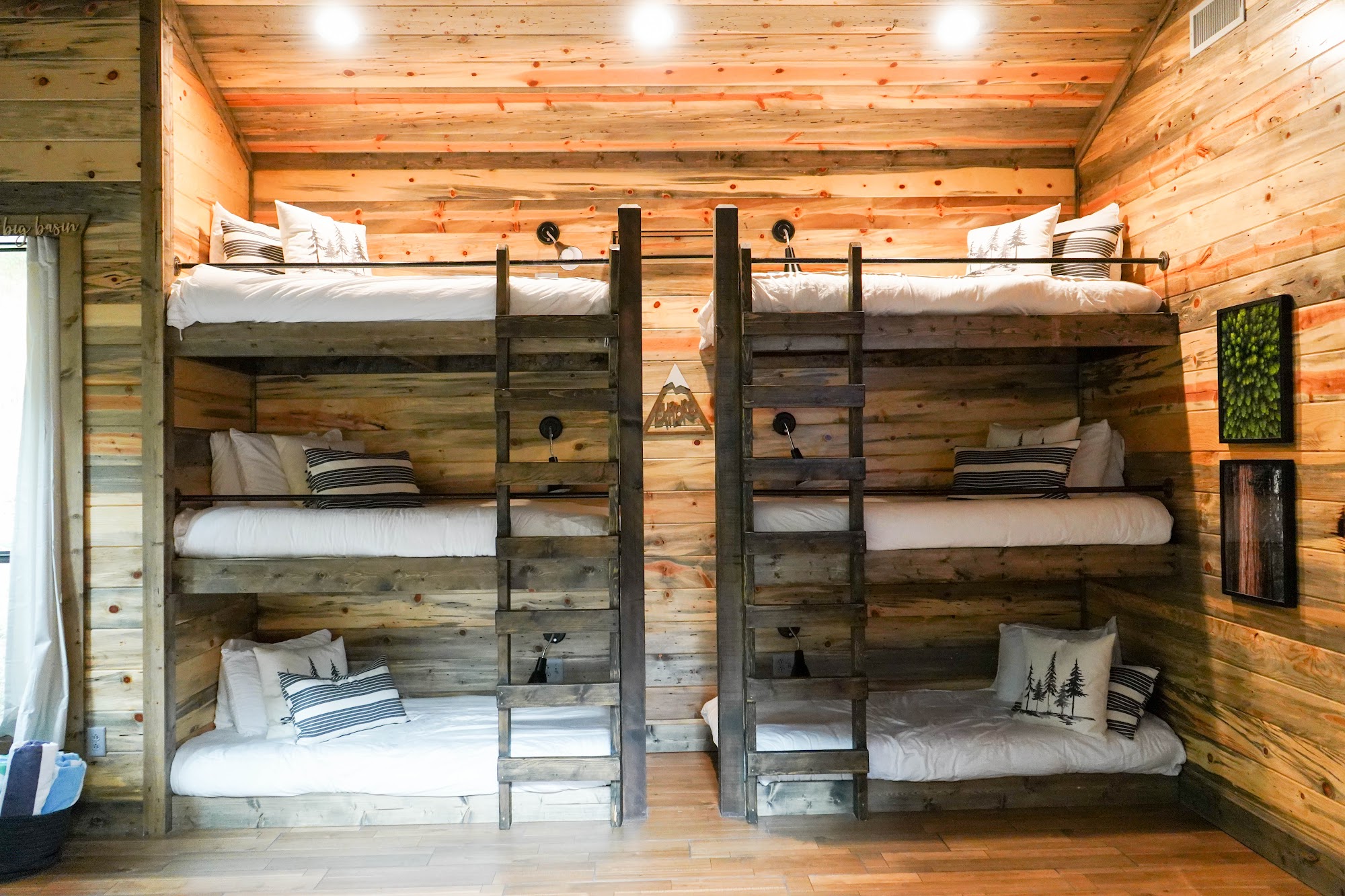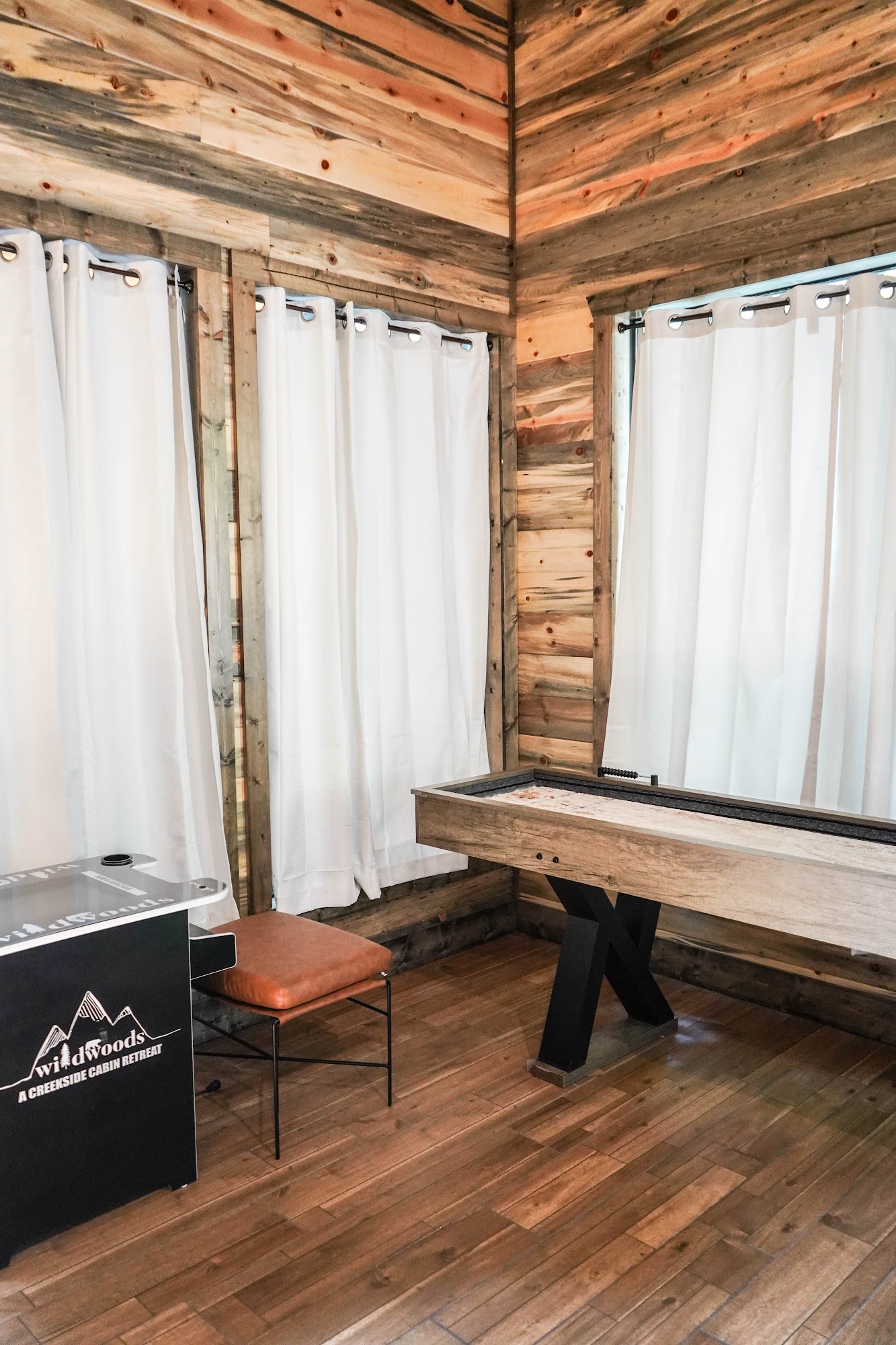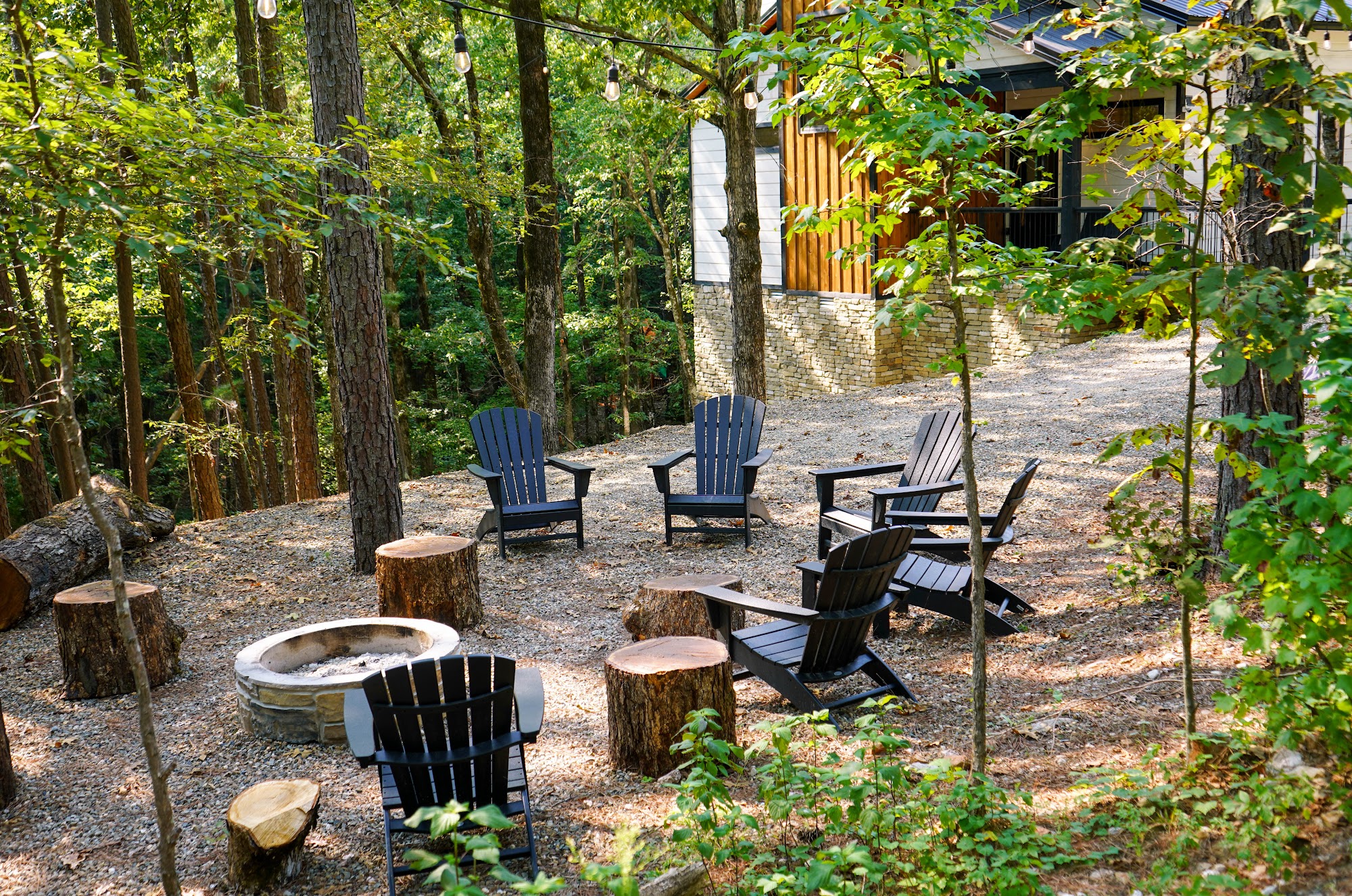 Wildwoods Broken Bow, OK is a wonderful cabin getaway perfect for families and groups. Guests are greeted with stunning floor-to-ceiling views of the woods, creating a relaxing and beautiful setting. The cabin is well appointed, offering a variety of coffee and tea makers, fresh beans, and a spacious coffee bar, ensuring guests feel comfortable and prepared. Inside, there are two plush leather couches ideal for lounging while enjoying the outdoor views. The outdoor living areas include a covered porch with a spa, perfect for relaxing or dining, and a second open-air deck nestled within the trees, great for watching the game or enjoying drinks. For families, there is a fairy-tale bridge over a creek leading to a playscape with an eagle’s nest climbing area, swing set, slide, fort, and climbing wall, providing fun for kids of all ages. The home can accommodate large groups up to 12 and is thoughtfully decorated with amenities like a step stool and portable crib for little ones. The hot tub offers a cozy experience during cold weather, and the entire property is clean, inviting, and equipped for preparing all types of meals. Overall, Wildwoods is praised for its beautiful views, comfort, and attentive host, making it a memorable vacation spot.