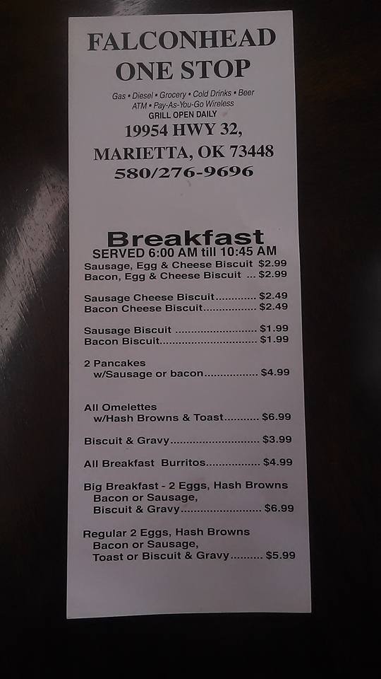 Great place for a burger and fries, hot breakfast, drinks, snacks, and even champagne. Folks are awesome and they have ethanol free gas. 10 miles from Marietta, so they are very rural but fairly priced. I love the One Stop!