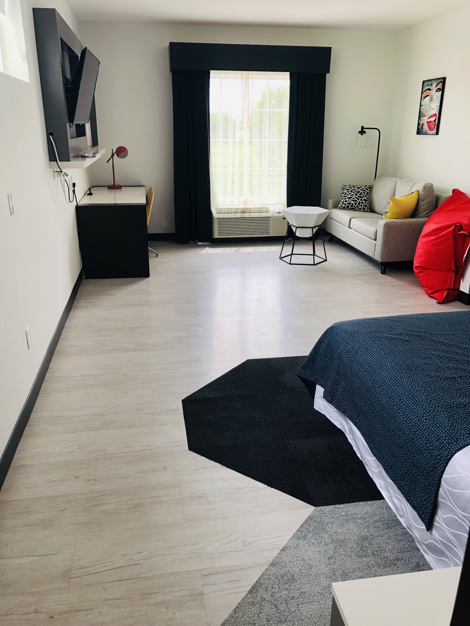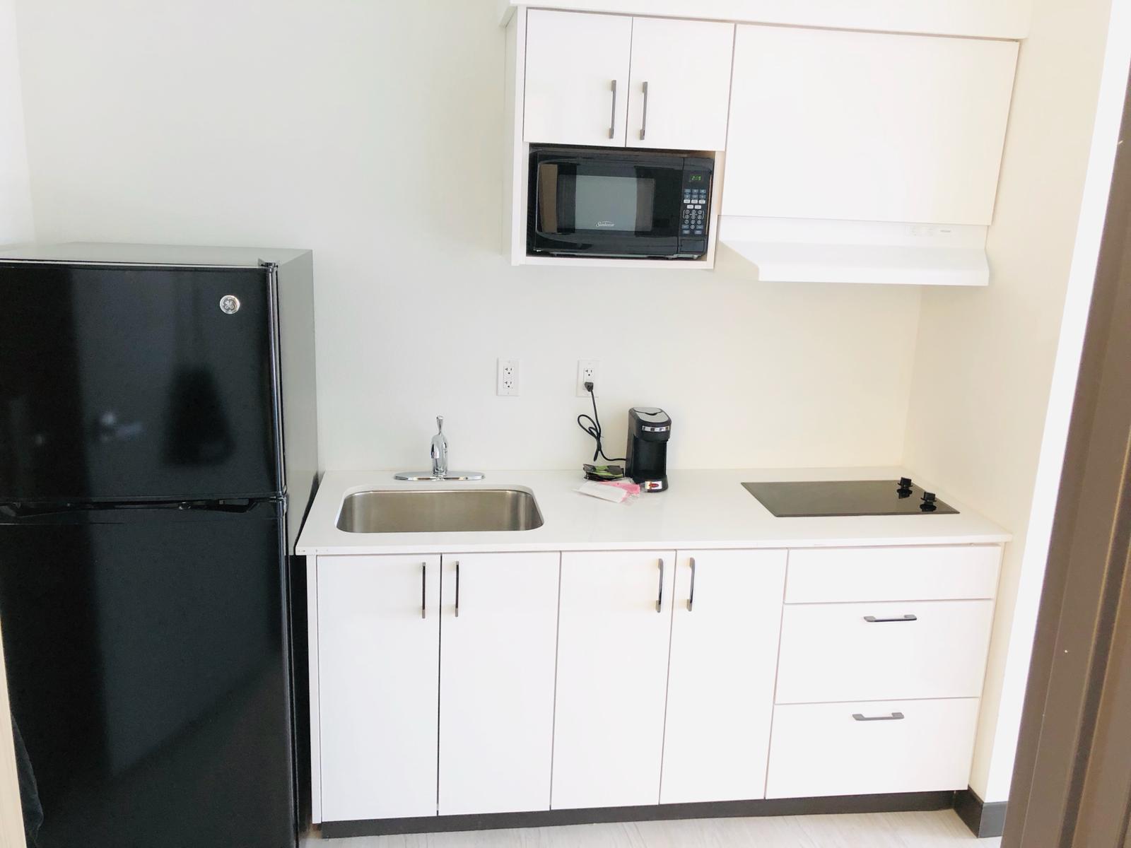 Small renovations currently but the rooms are awesome! They are like a studio apartment with a small kitchen area that has the appliances for you to cook your own food. The shower was amazing 👏 hot water and spacious shower stall to relax. They also accommodate people with pets and service animals. Staff was friendly...