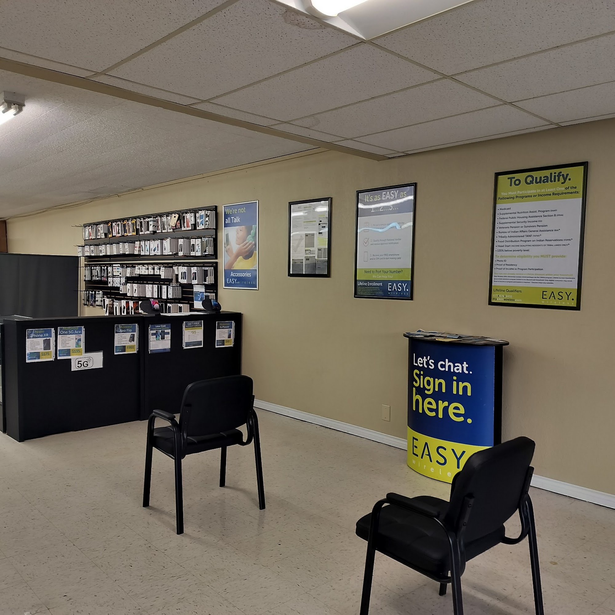 Get a FREE Smartphone with FREE monthly Talk, Text, and Data from EASY Wireless to eligible consumers who come in and qualify for the Lifeline Program. Sit back and relax while our customer service agents help enroll you for this FREE service. You will also find a great selection of UPGRADED phones and accessories for you to choose from. Lifeline is a nontransferable government assistance program limited to one discount per household. Only eligible consumers may enroll. Easy Telephone Services Company is an eligible telecommunications carrier.