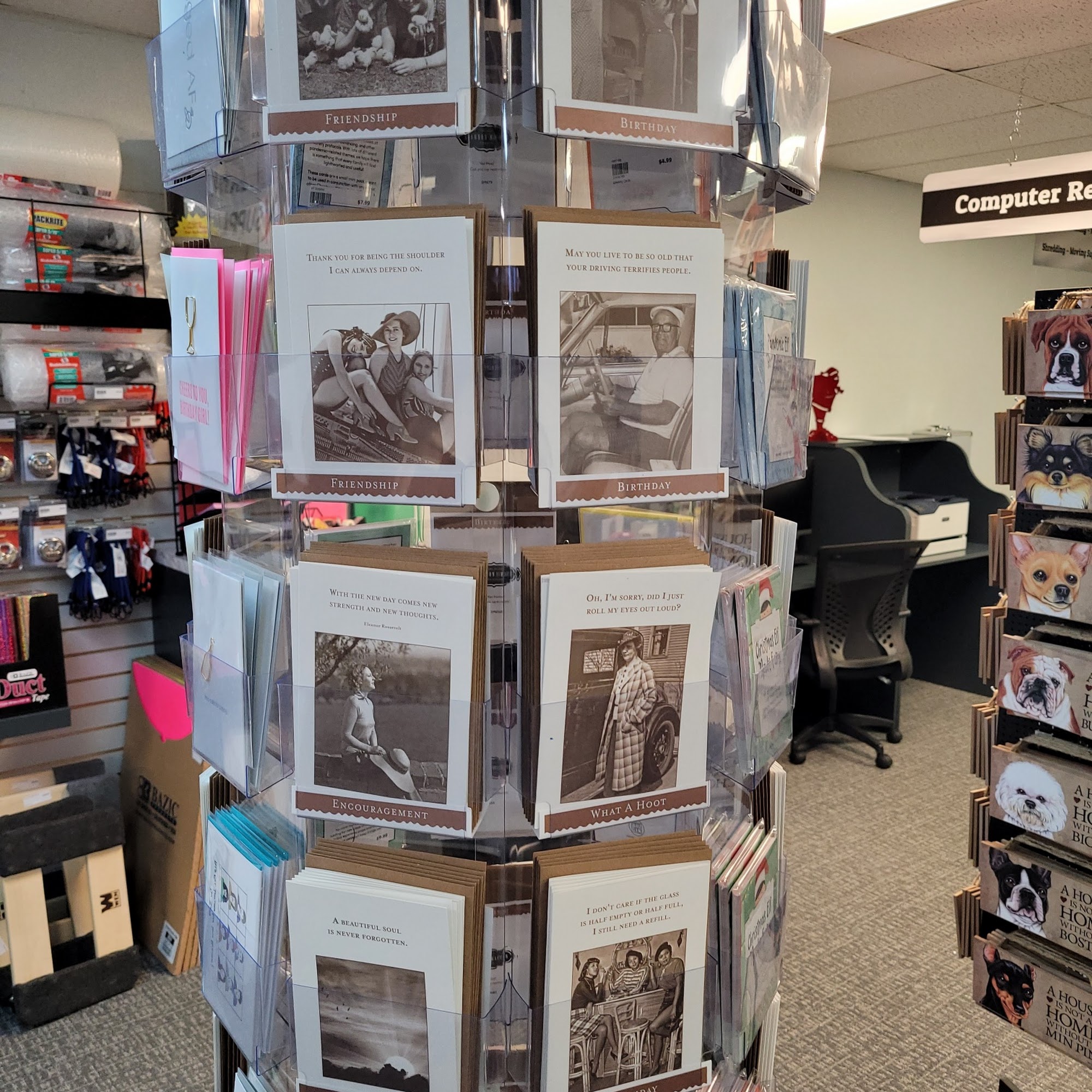 They do all my Printing work for me everywhere I go people ask where I got my business cards made they have cards gifts and the most amazing friendly service. They treat you like a friend but very professional at the same time. I recommend them with 10 stars.
