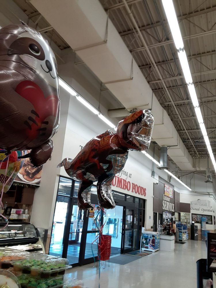 Jumbo Foods is a unique Retail Grocery Store with a Deli Restaurant, Fresh Bakery, Specialty Cheese Section, Service Meat, Fresh Seafood, Gift/Floral shop as well as a Pharmacy. Jumbo Foods' main mission is to provide optimal customer service to all customers and support the local community. Customers praise the helpful and friendly staff, such as a young man named Jimmy who assisted a shopper, and a customer service representative named Laura who went above and beyond to help a customer in need. Reviewers highlight the good selection, prices, and quality of the store's meats, fruits, and vegetables, as well as its convenient late hours for college students. Overall, Jumbo Foods is described as a reliable and customer-focused grocery store that meets the diverse needs of its community.