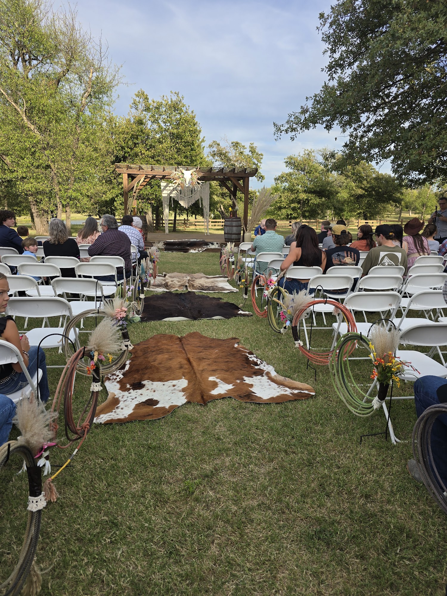 We are a wedding and event venue located right outside of Stillwater, OK (near Glencoe). We are directly off of 412. We provide indoor and outdoor wedding facilities utilizing our stunning barn and picturesque property. We have even added a beautiful pond wedding for those wanting a smaller ceremony. We can accommodate up to 350 guests and offer very competitive and reasonable rates. We would love to help you plan your next event or wedding! Contact us today.