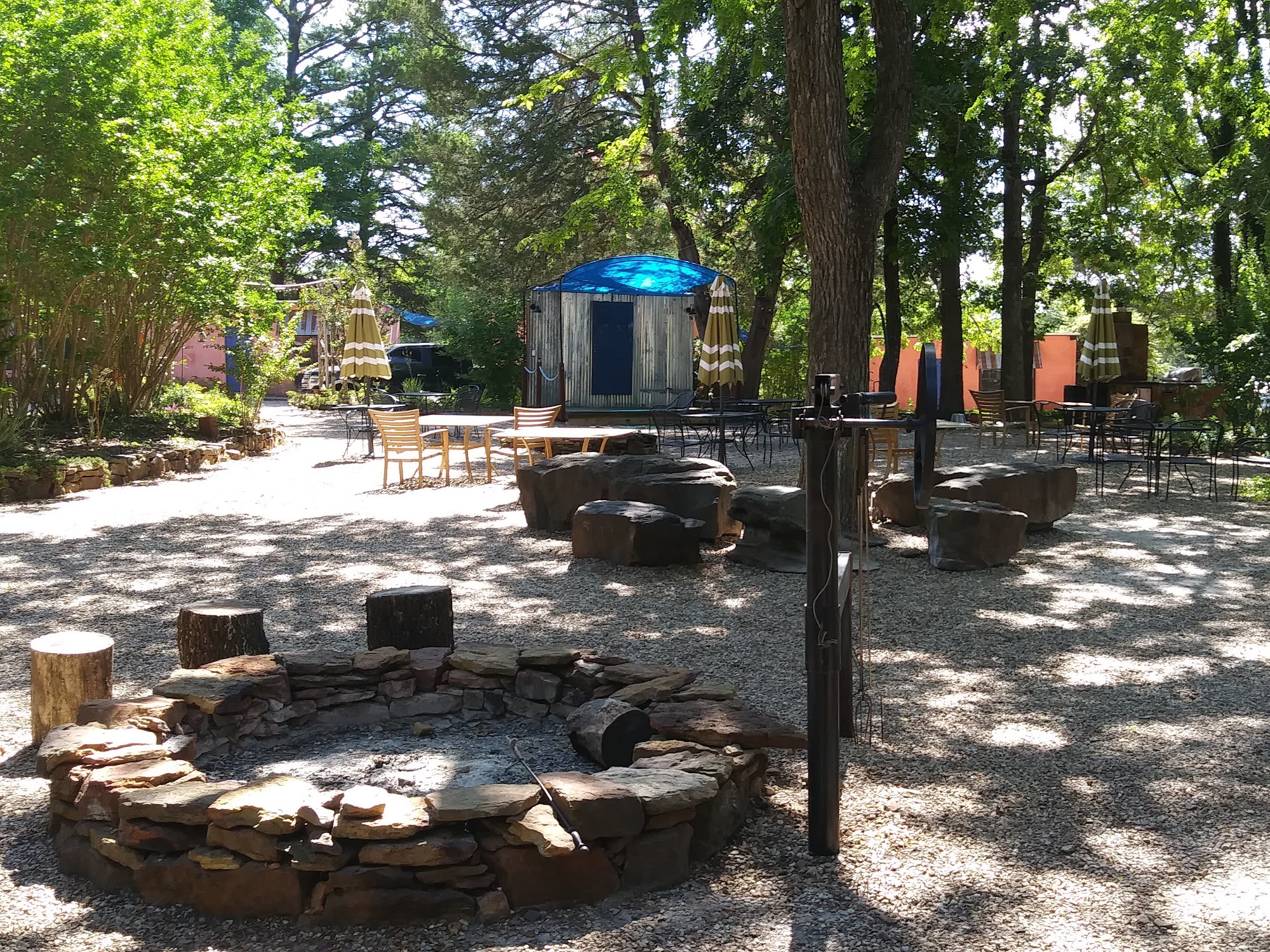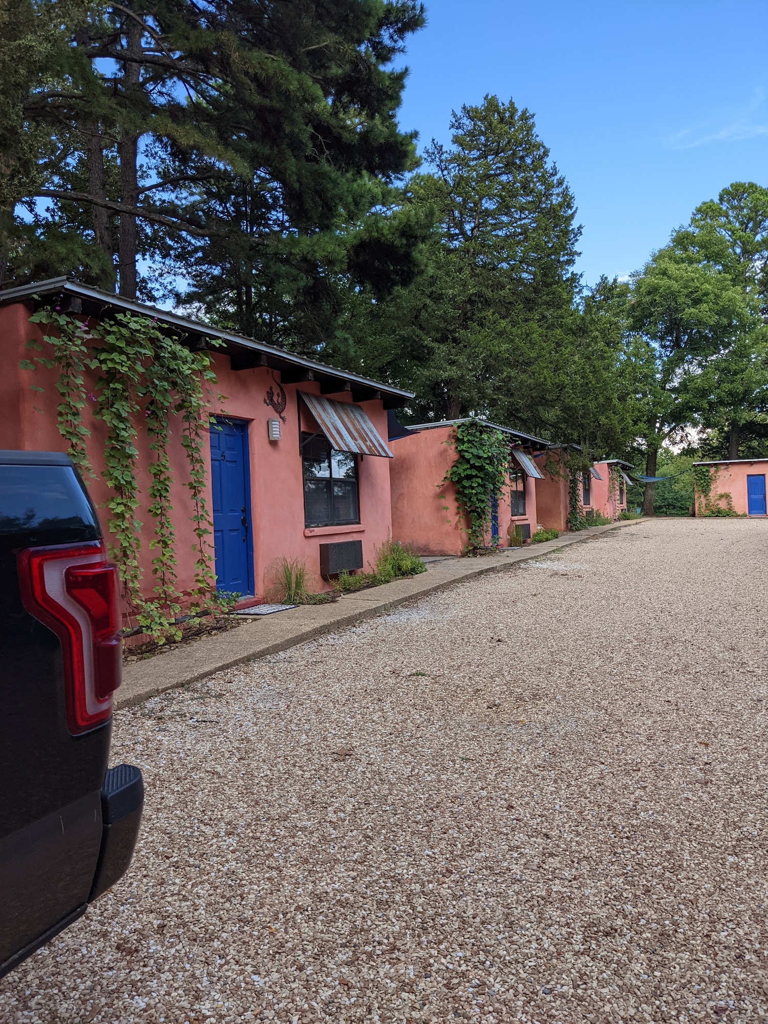 Blue Doors Cabins at Tenkiller is an enchanting and magical place, perfect for a peaceful getaway, wedding reception, family gathering, or reunion. The beautiful, comfortable, and charming casitas are clean and full of vintage southwest decor. The grounds feature a courtyard with a stage, dance floor, tables, and kitchen, a pond for fishing, a fountain, a giant garden, and roaming chickens. Guests enjoy fun activities like kayaking, using the outdoor wood pizza oven, and karaoke. The ownership and onsite concierge team are amazing, incredibly helpful, welcoming, and attentive, often checking to ensure everything goes smoothly. The overall experience is absolutely perfect, laid-back, wonderful, and remarkably affordable, with pet-friendly policies and cheap kayak rentals. It is a highly recommended setting for creating amazing memories.