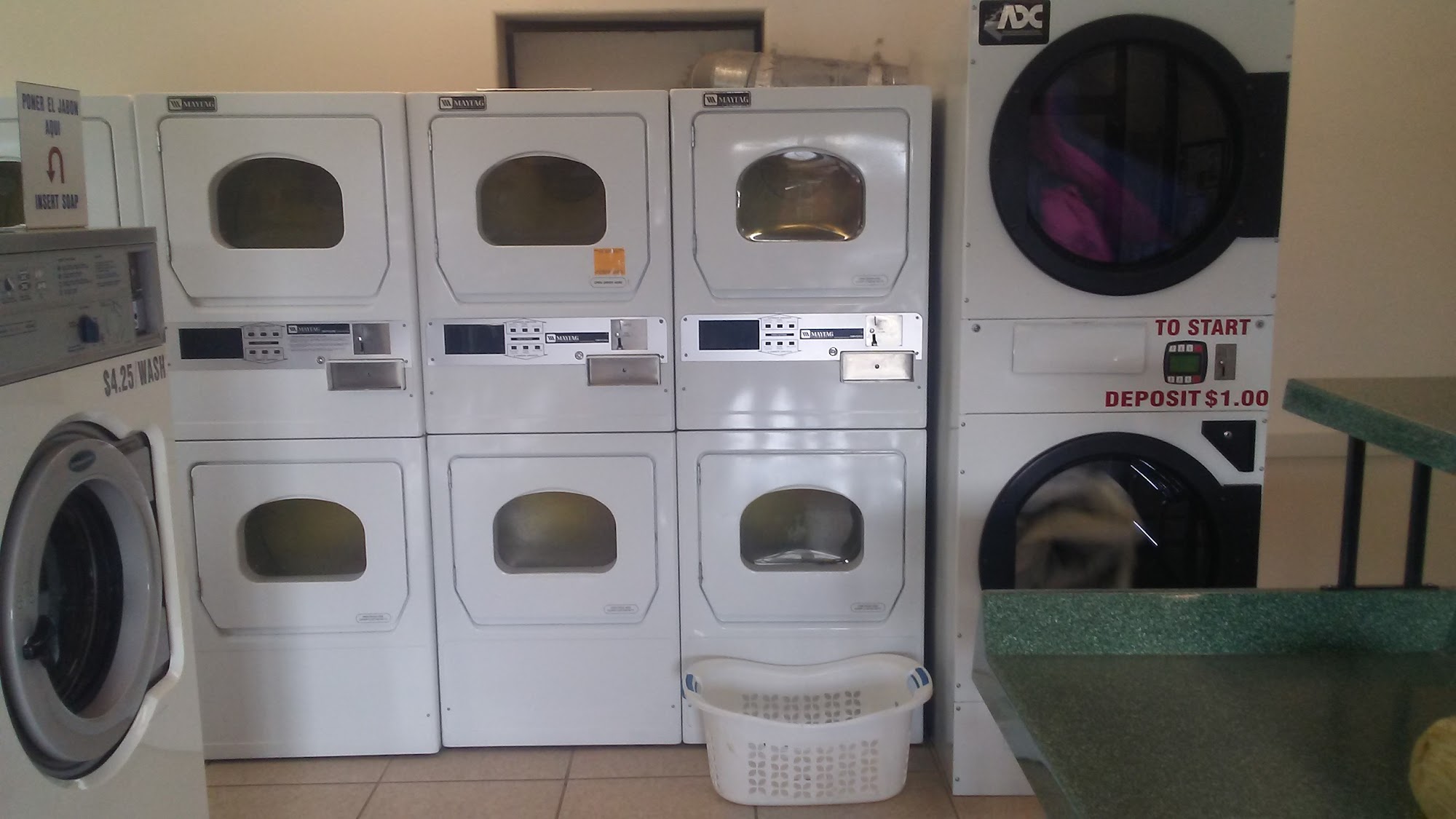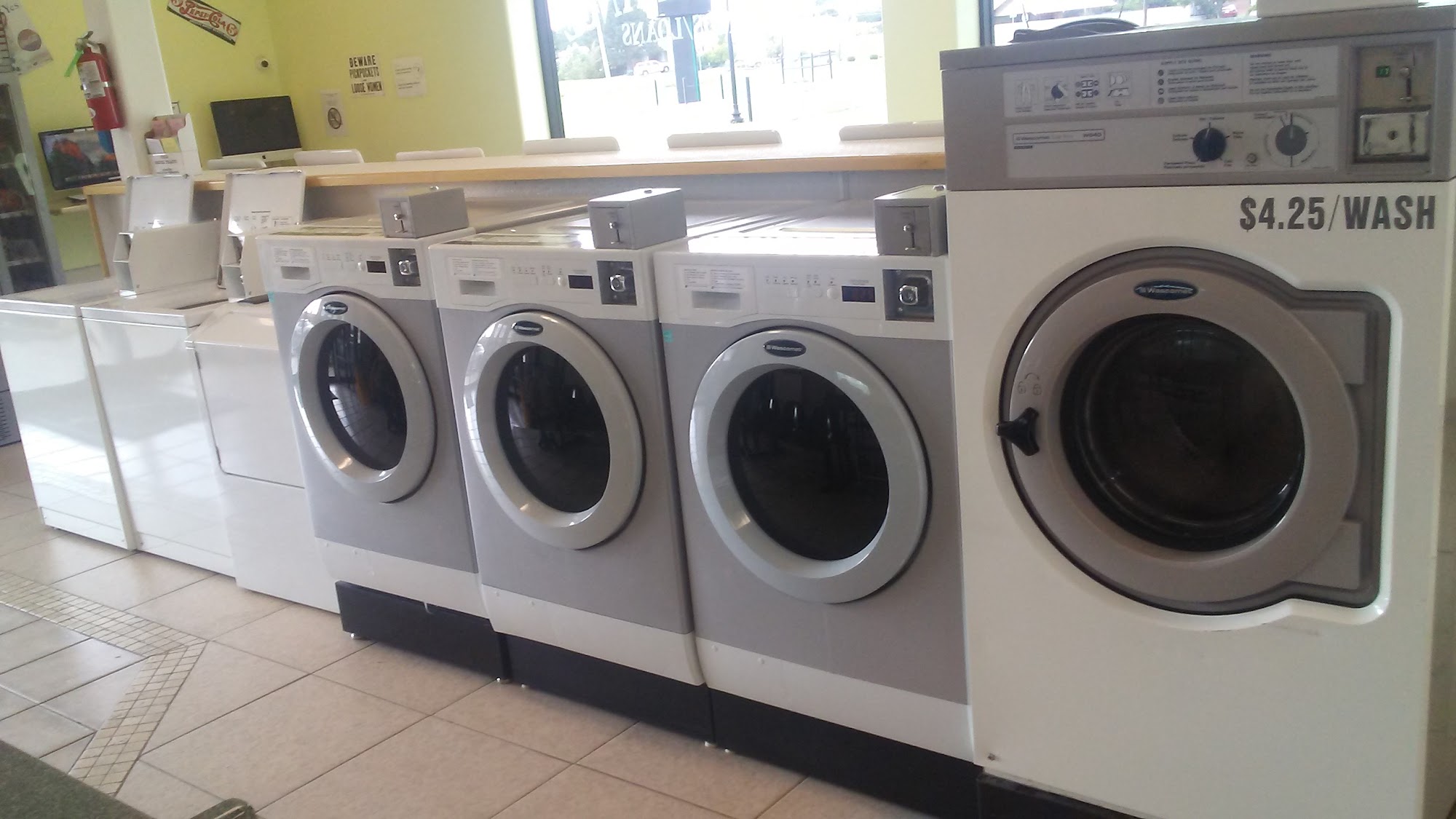 Laundromat is open at 6am and pricing is fair. Very clean and machines are well maintained. They have wi-fi and good supply of snacks and laundry products.