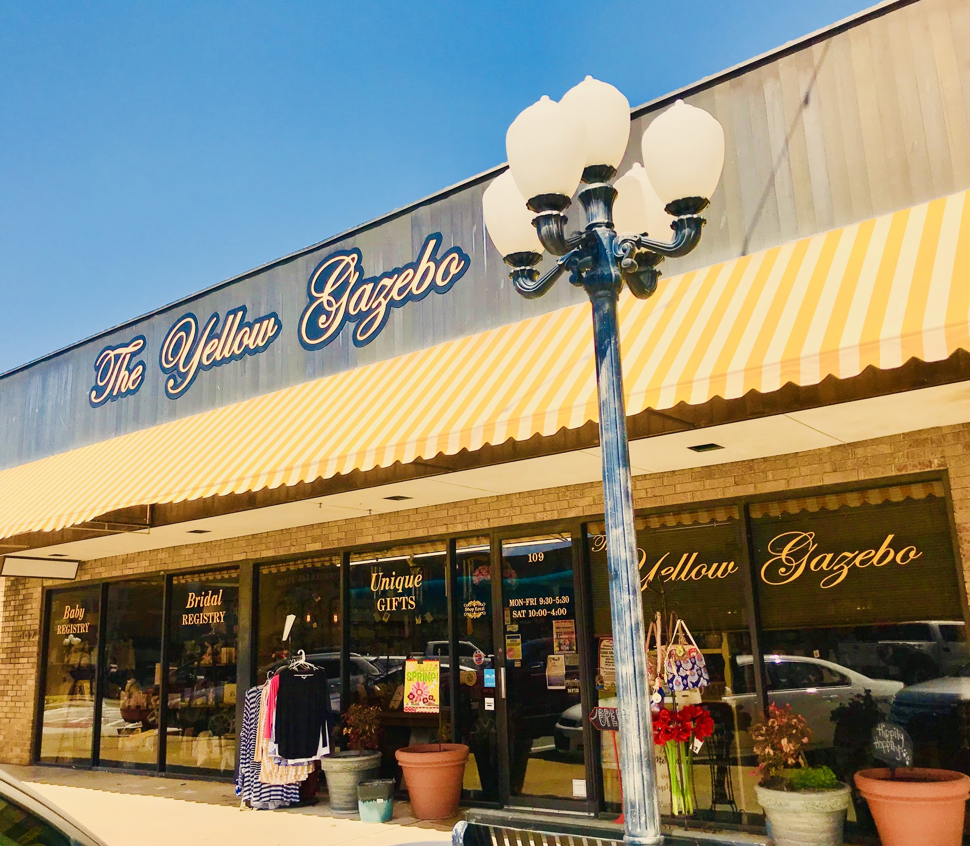 Yellow Gazebo is your family-owned neighborhood gift shop, serving McAlester since 1973. We pride ourselves on providing one-on-one personal service to all our customers. Come check out our vast inventory of home decor and unique gifts! We offer a range of brand names, including Fossil bags and watches, Tyler candles and laundry soap, Le Cadeaux items, Fiesta dishes, and Wind and Willow products. Our bridal & baby shower registries are a great option to create your wish list. We also offer free gift wrapping and gift cards to meet your needs. Stop by and shop with us at the Yellow Gazebo today!