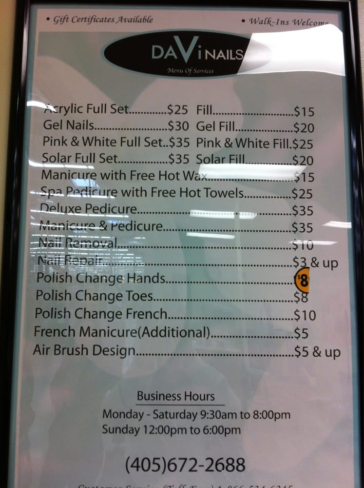 I have been going to Da-Vi Nails for 2yrs now and love the staff they are very welcoming, making sure my needs are met. My nails always come out great!Thank youCindy?