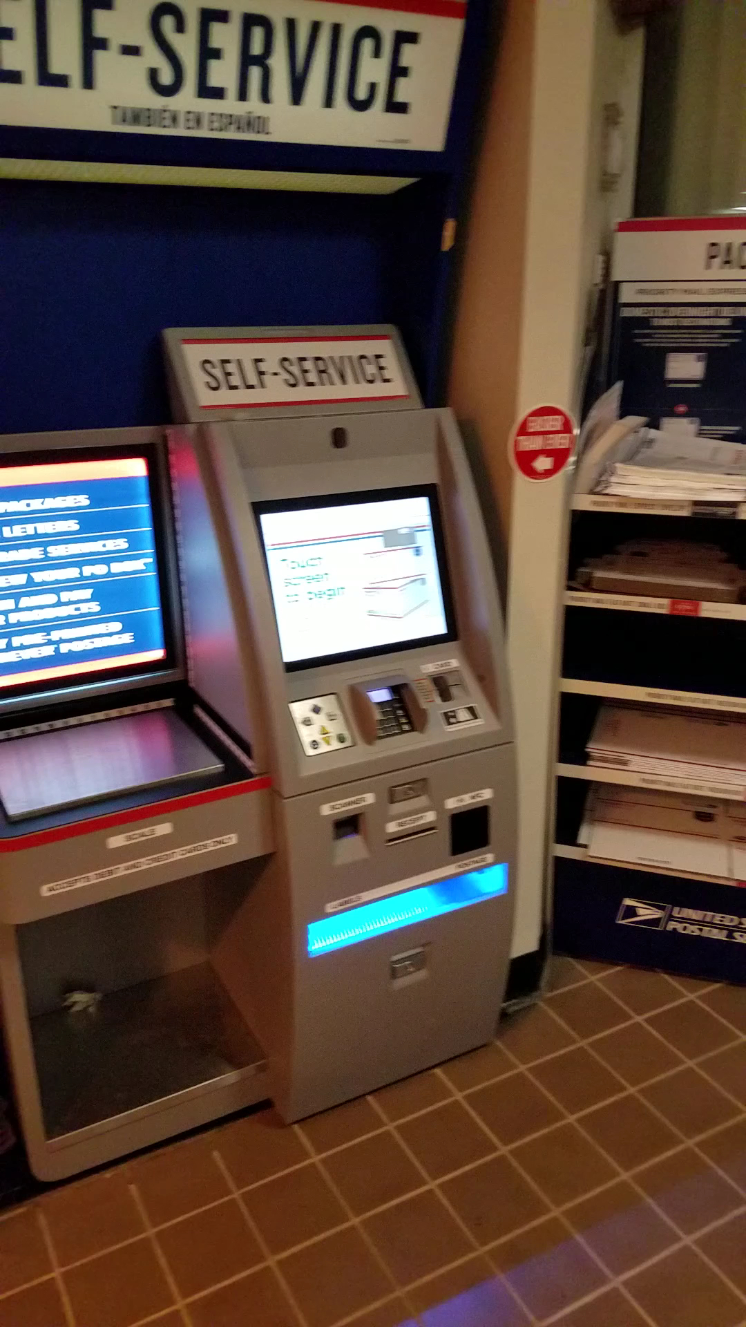 They close the building during non business hours so you cant use the self-service machine to scan and drop off packages. You can still use the outside drop box near the street.