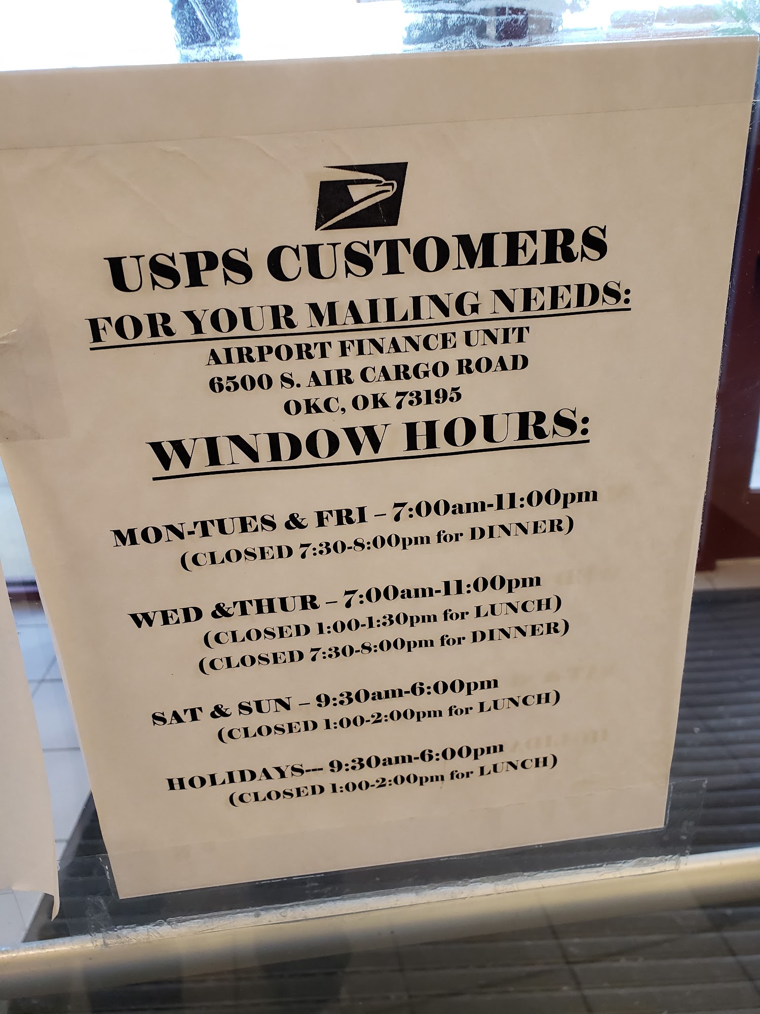 6500 Air Cargo Rd Ste B, Oklahoma City OK 73195 Hours