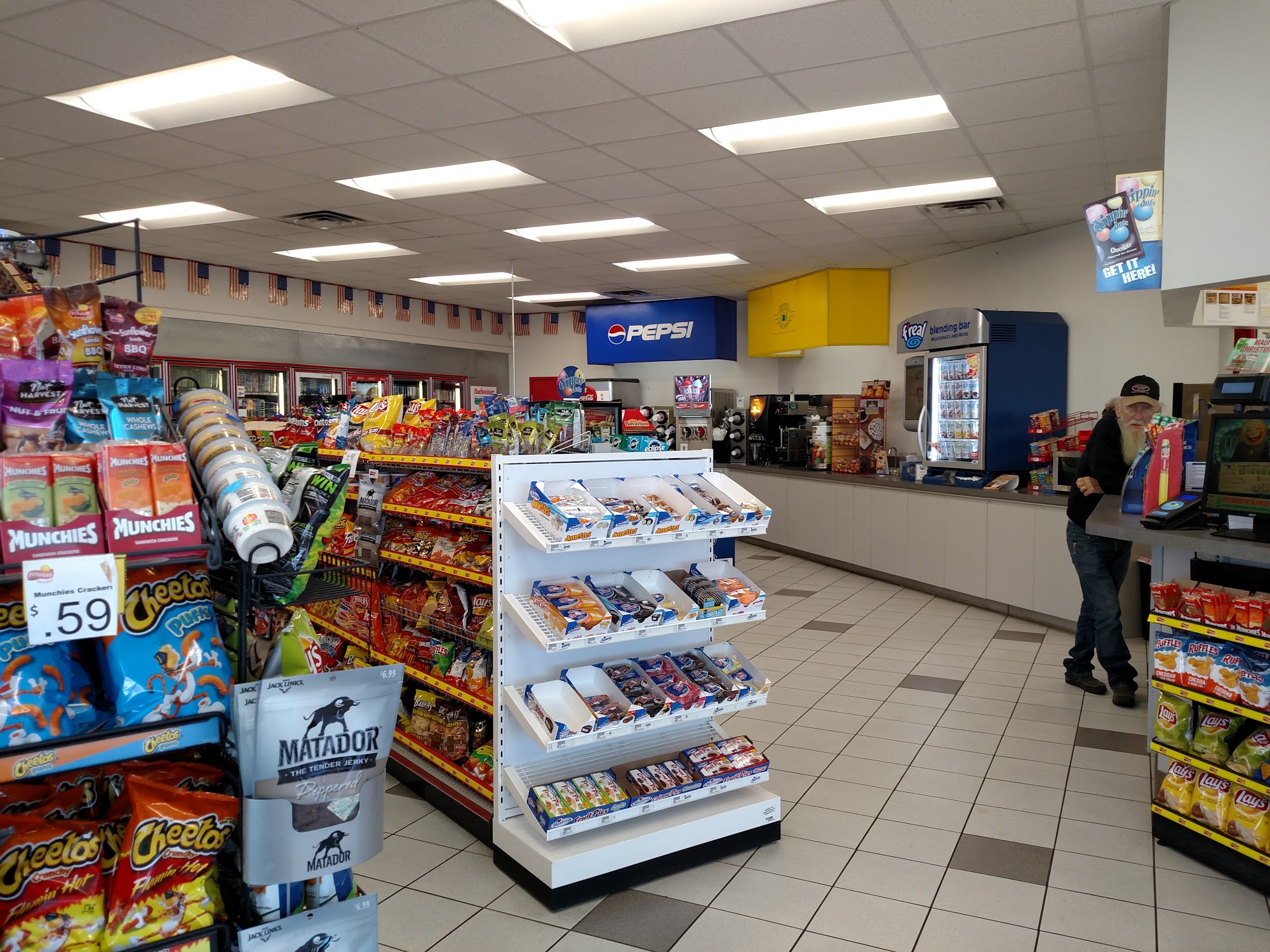 Ok, enjoy the place because they offer a wide variety of foods, etc.However, the flickering lights on the building and on the coverings near the pumps are beyond terrifying to a epileptic that triggers from photosensitivity. Please,?, fix your lights!