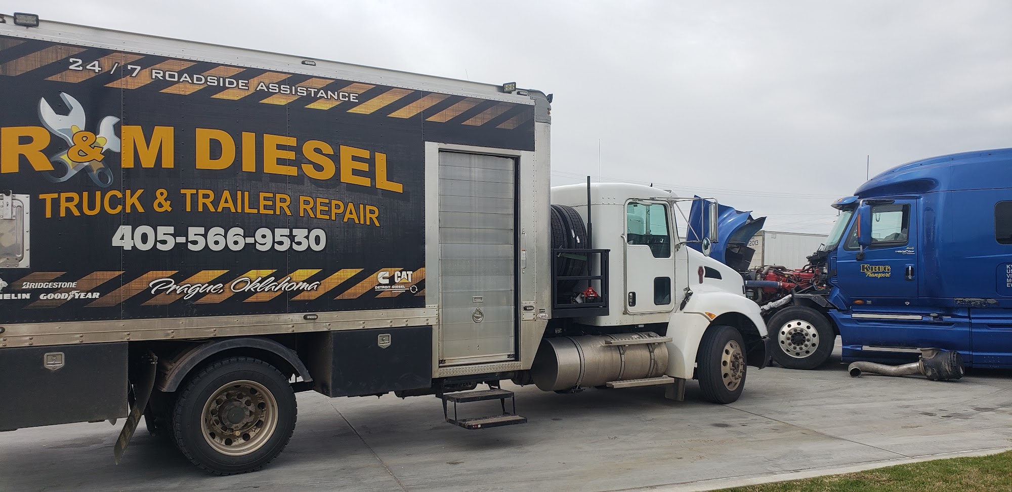 R & M Diesel, Inc. is a reliable semi-truck and trailer repair shop that offers 24-hour road service from Monday 7 AM to Saturday 12 PM, with limited service during holidays and weekends. They provide a wide range of services including computer diagnostics, federal DOT inspections, engine repairs, transmissions, rear ends, wheel ends, brakes, bearings, wheel seals, starters, alternators, and batteries—anything on trucks or trailers except refrigerated units, as they have no cold storage. Despite challenges with staff shortages, the company strives to get customers back on the road quickly. Customers have praised their quick and efficient service, often being back on the road within an hour, even when far from the shop. They are known for friendly service, knowledgeable staff, and quality work at fair prices. Roadside assistance is available, with technicians responding promptly to breakdowns, sometimes with worn equipment but still providing effective help. Overall, R & M Diesel is highly recommended for dependable truck and trailer repairs and roadside support.