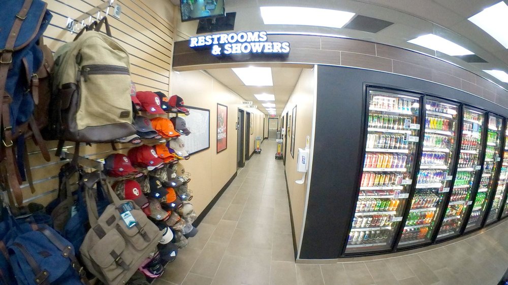 Love's Travel Stop is a clean and well-kept location. While it is not the biggest and the inside is a bit dated, it remains neat and pleasant. The parking lot is surprisingly spacious with plenty of spots. The staff provides amazing, superb, and over-the-top nice customer service, being friendly, welcoming, humble, and genuine. Employees are noted for being helpful beyond expectations. The restrooms are extremely clean. It offers services like showers and has food options such as Godfather's Pizza, which receives high praise. Overall, it is a great stop that makes travelers feel welcome and improves their day.