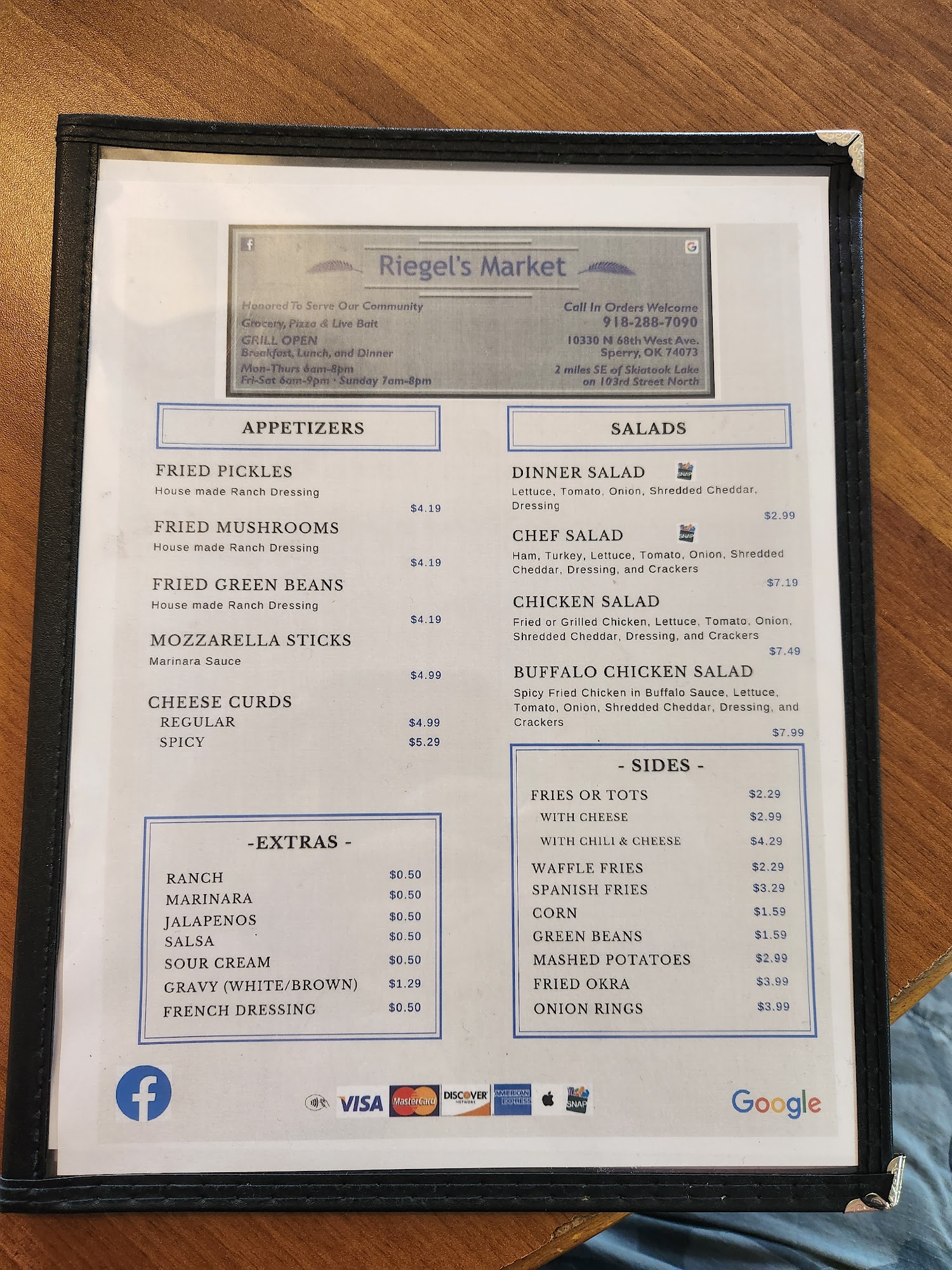 Welcome to Riegel's Market! Just 2 miles southeast of Skiatook Lake. We’re Not just a gas station! We have a brand new Commercial Kitchen with Drive-thru pick up. Betty’s burgers are amazing and new dinner specials weekly. Also, groceries, 100% Gas, Diesel fuel, Live Bait, and all of your Lake Beverage needs.