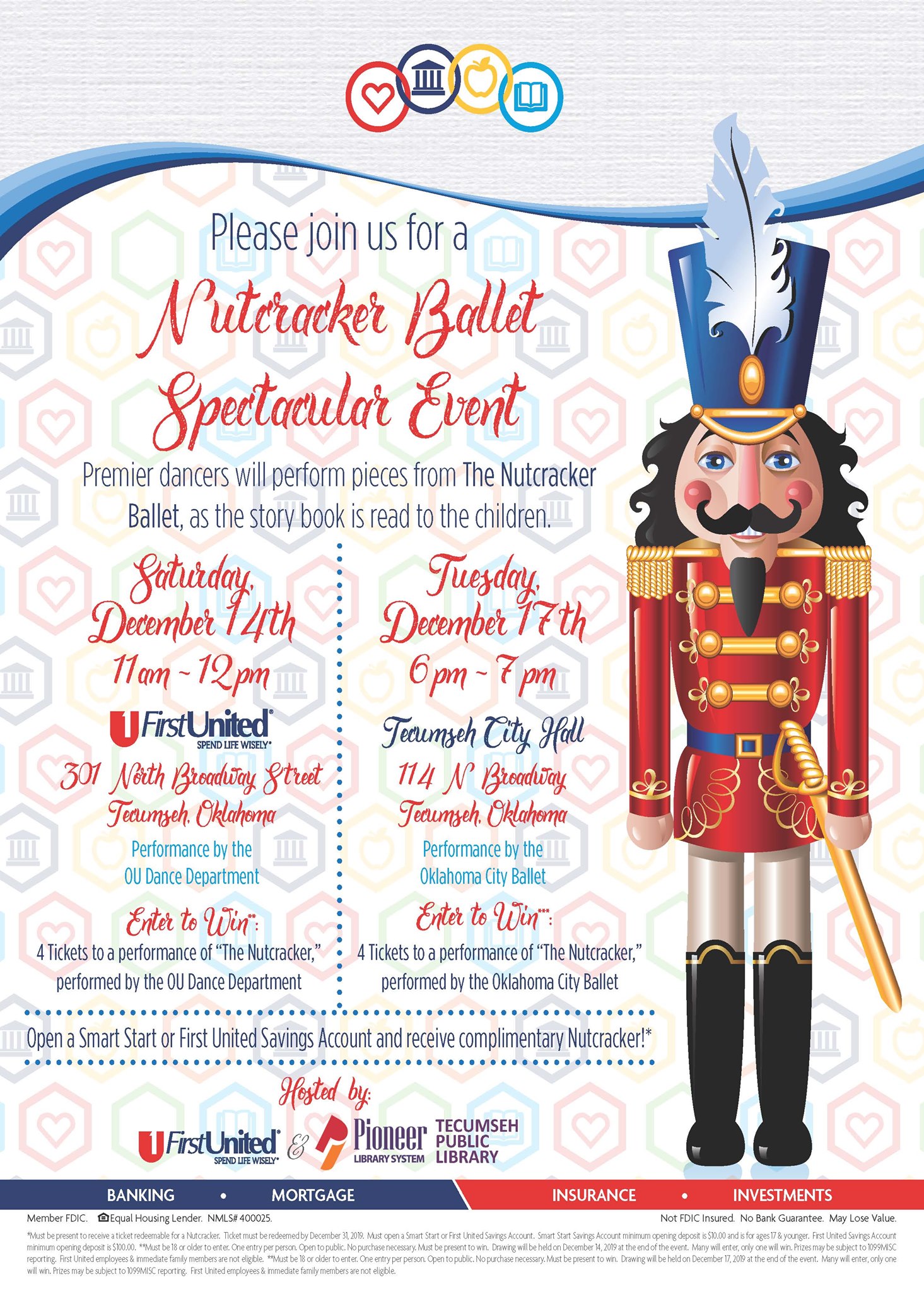 First United Bank is a community banking and financial services provider located in Tecumseh, OK. Trusted and reliable for over 120 years, First United has been dedicated to empowering individuals, families, small businesses, and non-profits to Spend Life Wisely®️. First United offers a wide range of financial products tailored to your unique life journey, whether you need personal or business services. This includes checking, savings, CDs, money market accounts (MMAs), personal and small business loans, mortgage loans, wealth management, financial advisors, online banking, and insurance.